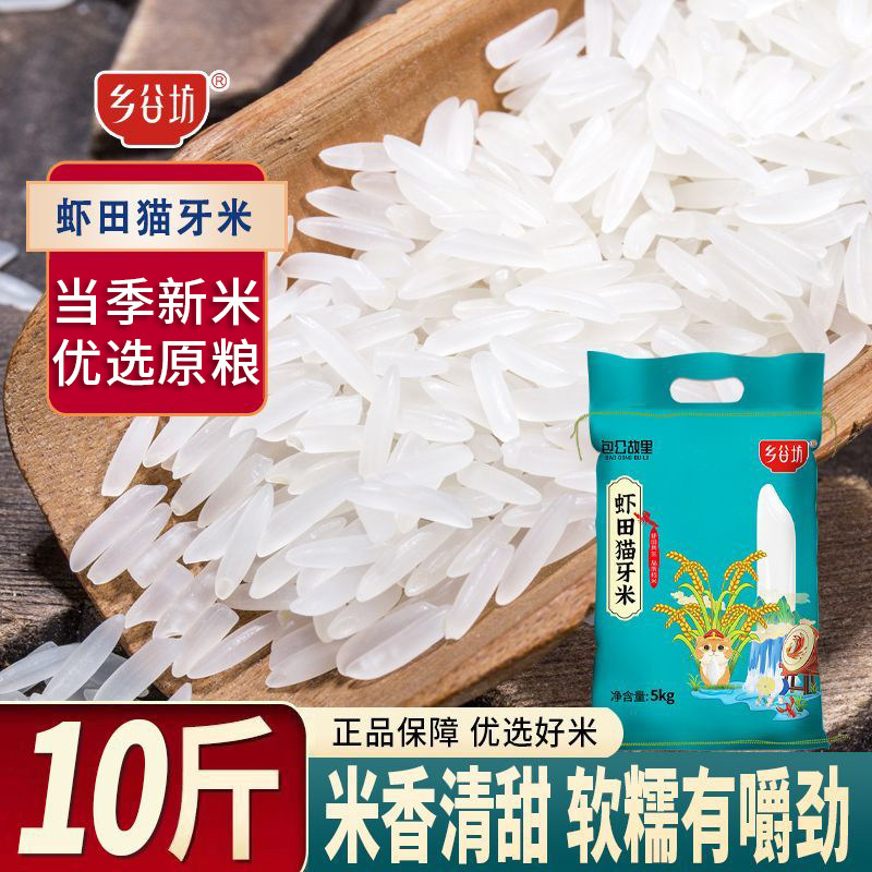 📚 乡谷坊大米10斤虾田猫牙米象牙米5kg油粘香米煲仔饭大米