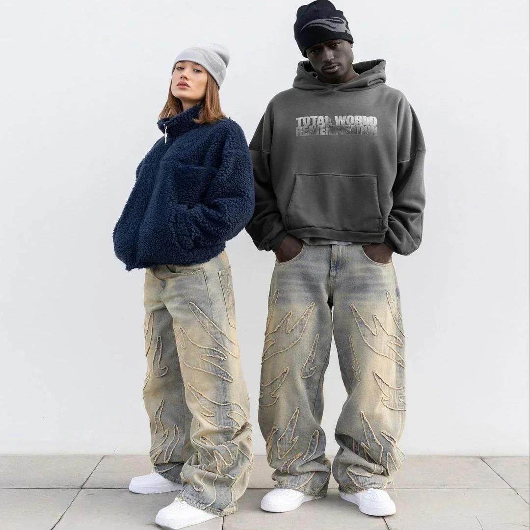 📚 Paired with vintage ruffled embroidery and grey jeans男女款