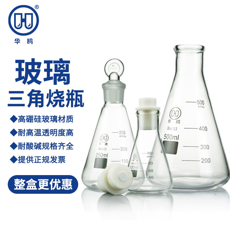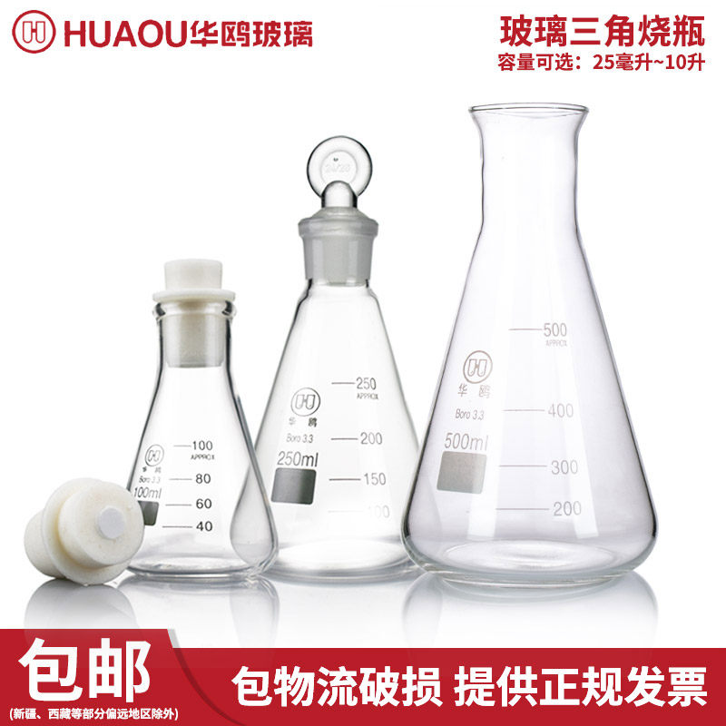 📚 三角烧瓶锥形瓶 玻璃三角瓶锥形烧瓶100 250 500 300 150ml带塞三角瓶1000ml可选带塞子实验室器材玻璃瓶