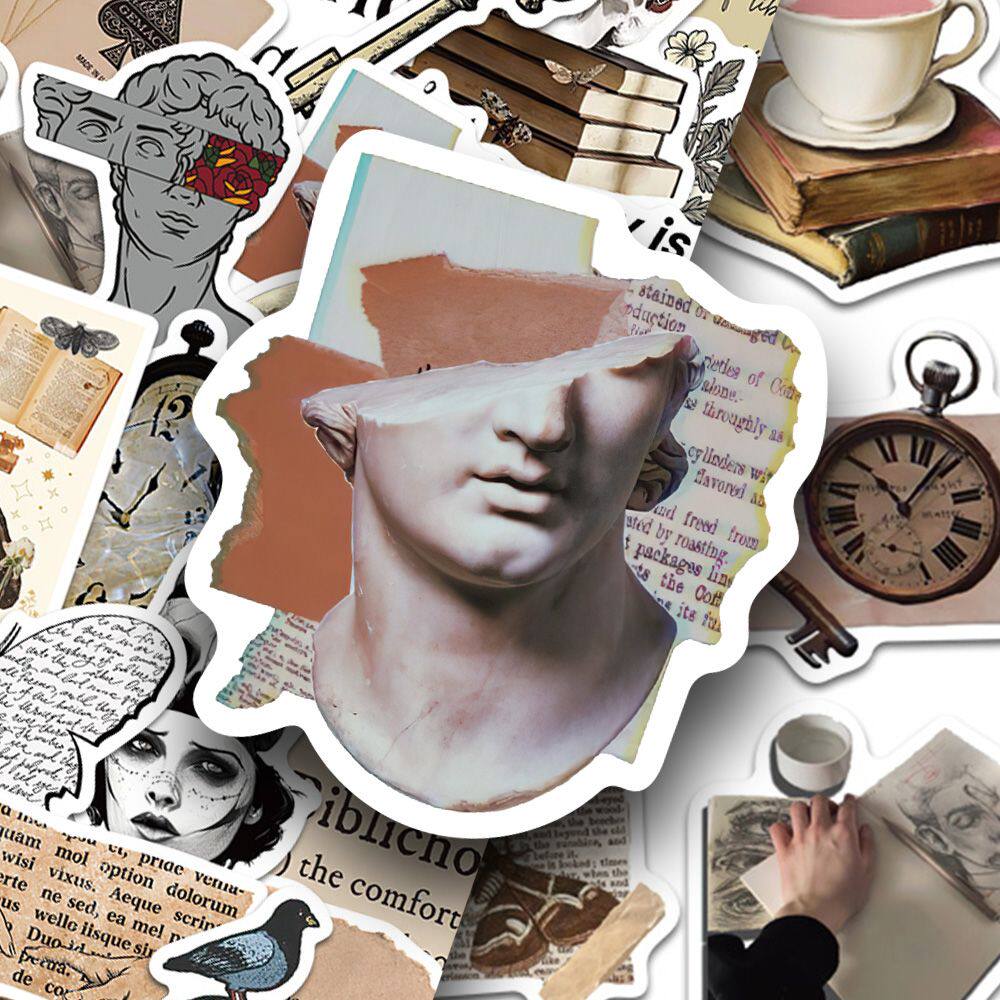 📚 100张Dark Academia贴纸欧美风复古简约慵懒怀旧创意手账手机壳笔记本电脑平板diy装饰防水贴画