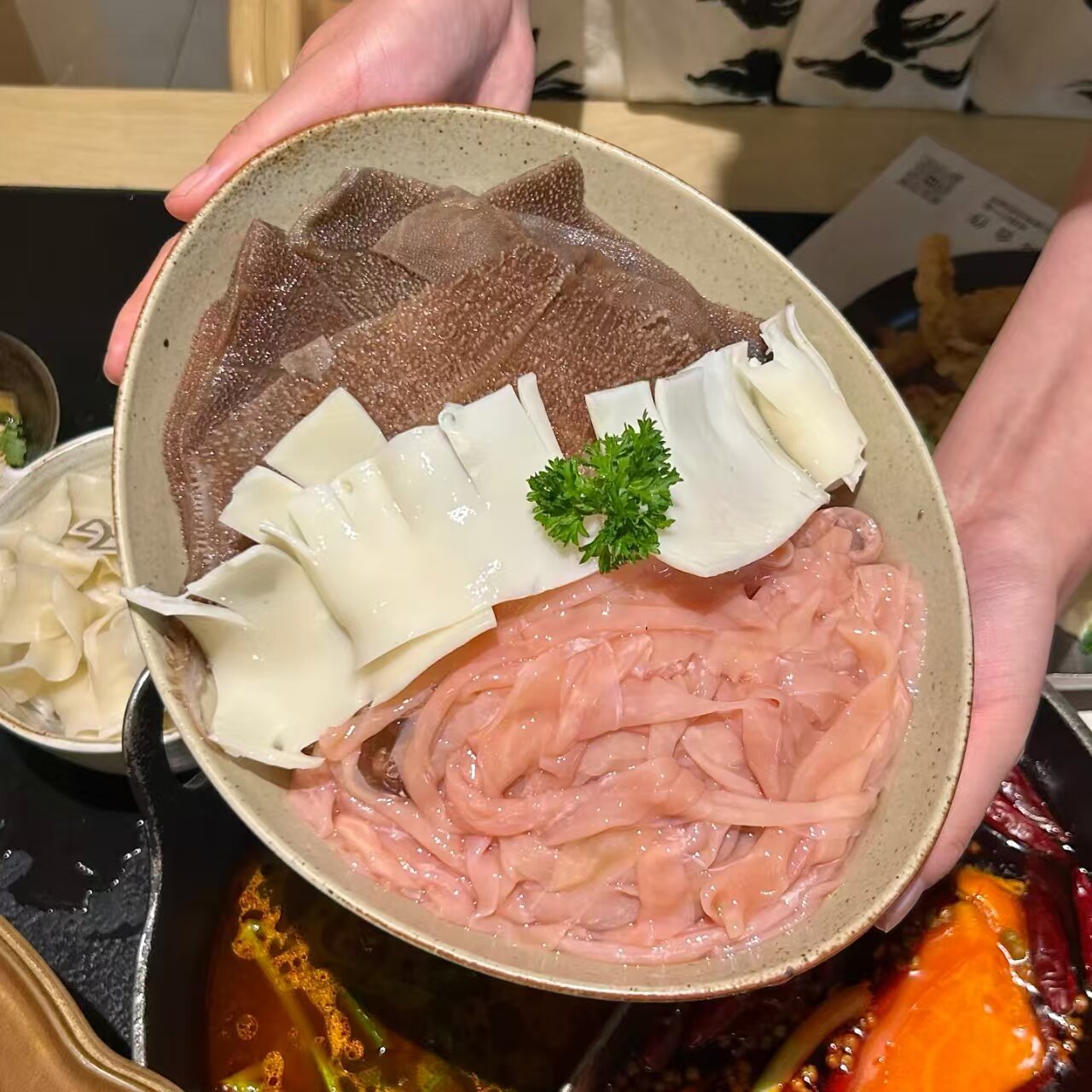 📚 网红创意火锅毛肚鸭肠黄喉专用拼盘特色餐具商用复古陶瓷元宝形碗