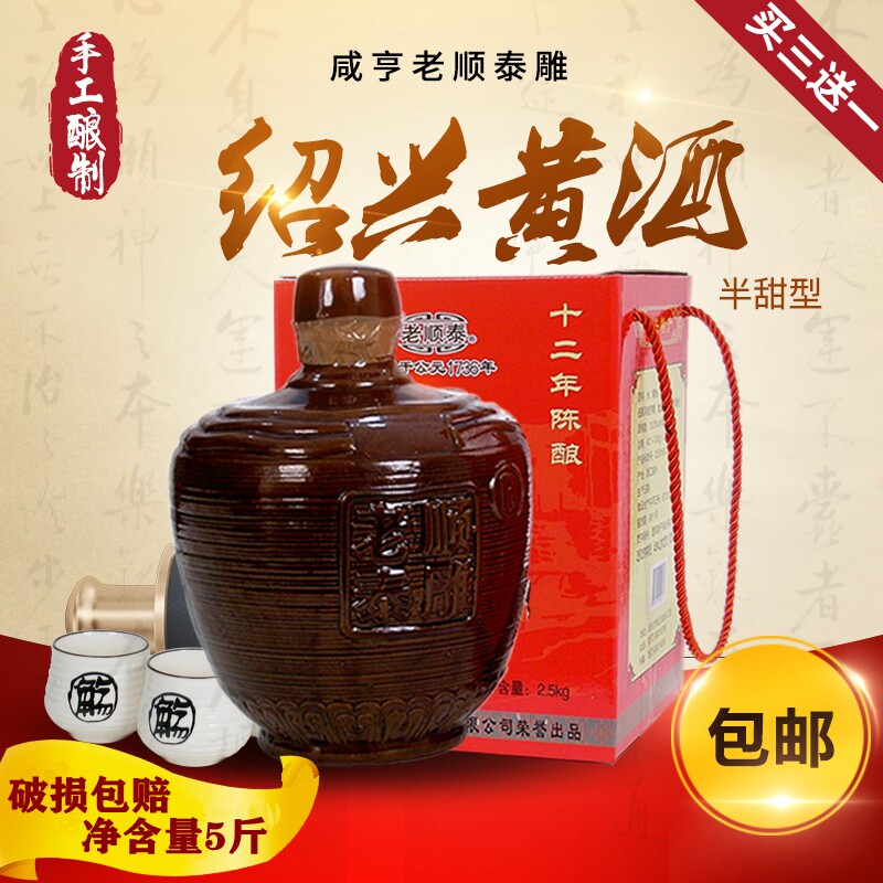📚 咸亨老顺泰雕十二年陈酿手工酿制浙江绍兴产黄酒糯米酒5斤1坛半甜