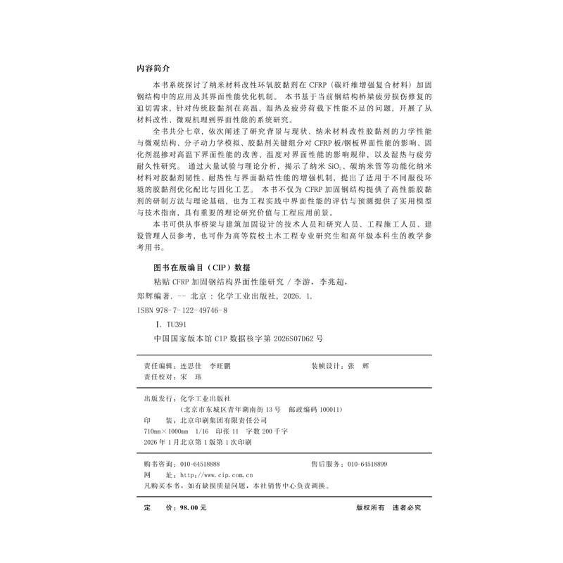 📚 粘贴CFRP加固钢结构界面性能研究李游、李兆超、郑辉 编著建筑/水利(新)化学工业出版社凤凰新华书店旗舰店