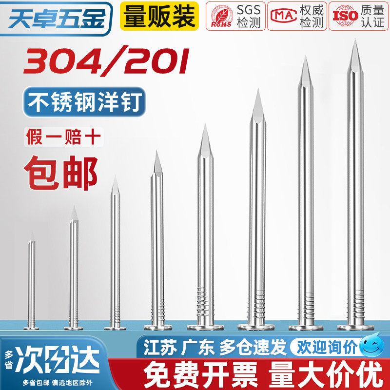 📚 天卓五金304/201不锈钢圆钉钢钉木工挂画钉加长洋钉铁钉地板钉子