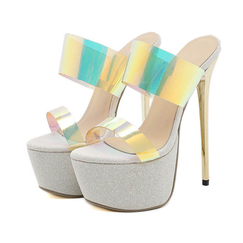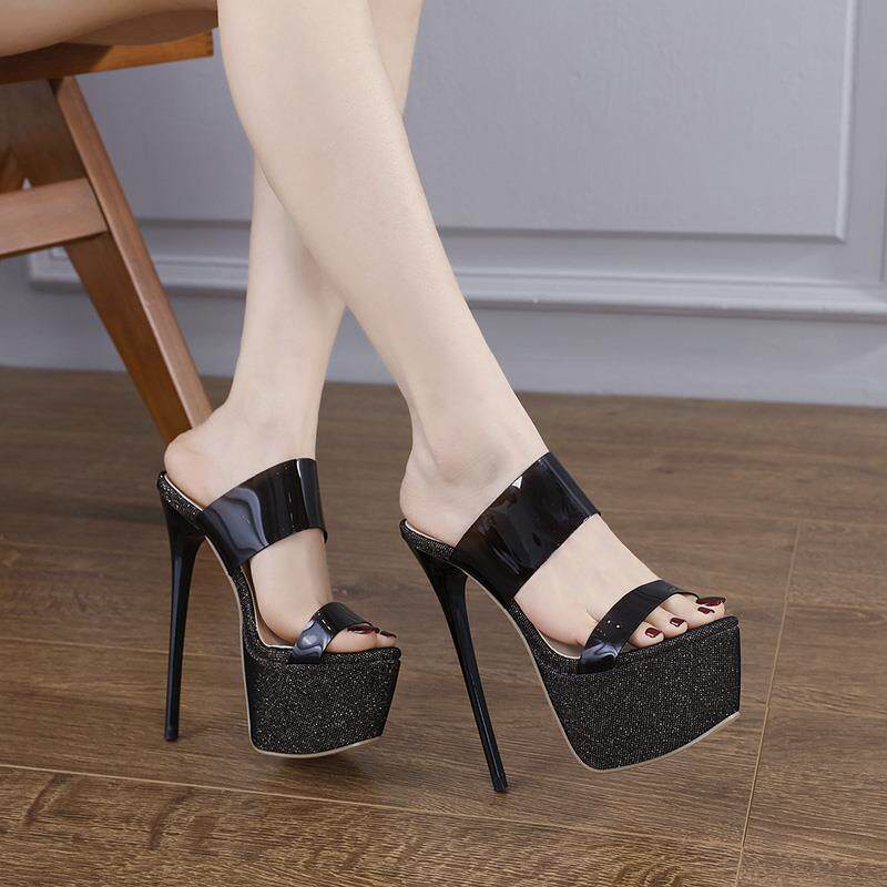 📚 外贸模特恨天高16cm超高跟防水台细跟一字拖鞋Lazada Women Shoes