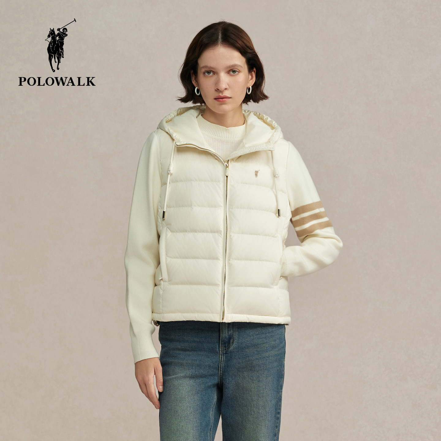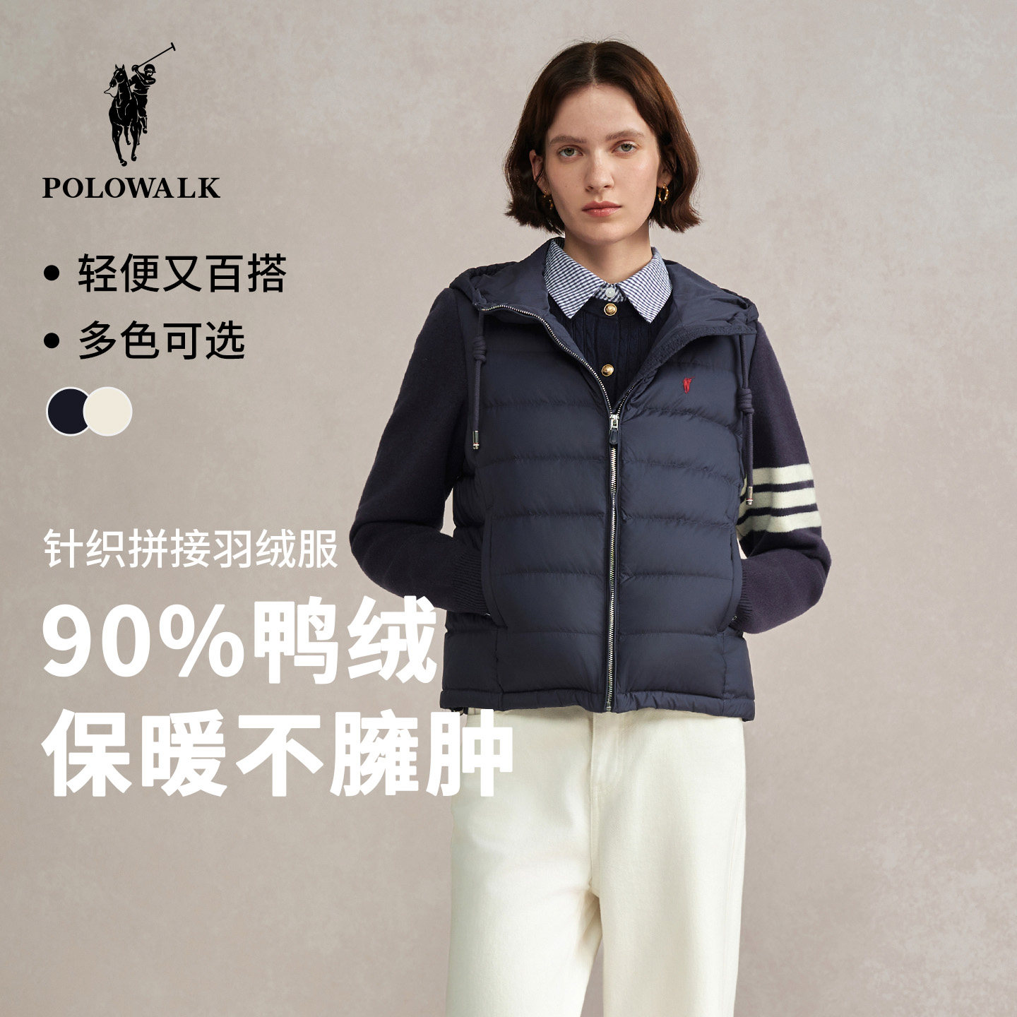 📚 POLOWALK女装排骨羽绒服2025冬季女士连帽羽绒服保暖拼接外套上衣