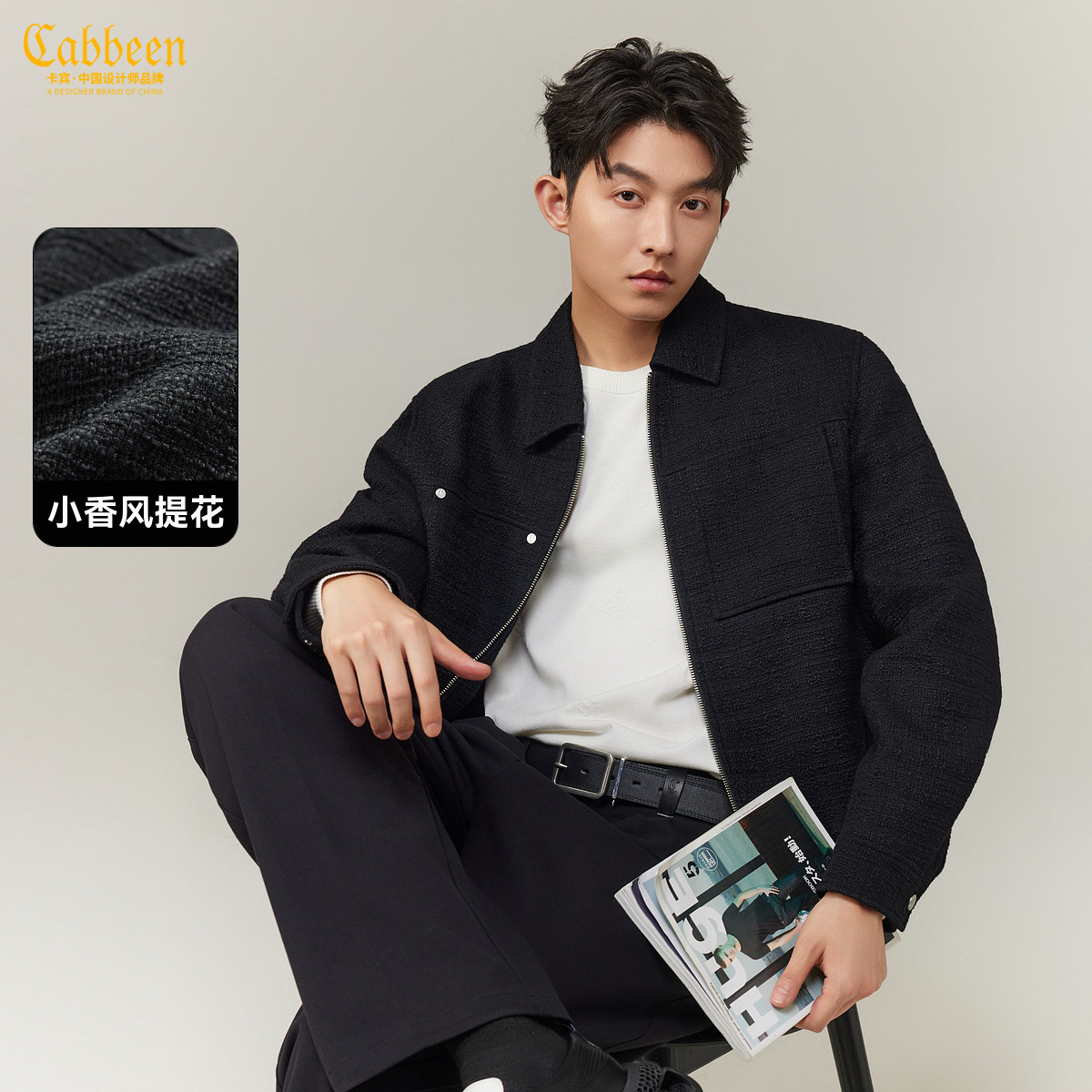 📚 【轻奢小香风】卡宾粗花呢翻领短夹克男装2025秋新款潮流休闲外套