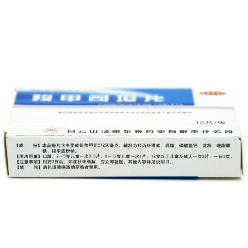 📚 白云峰 宝云山 羧甲司坦片 0.25g*12片 慢性支气管炎 哮喘咳痰