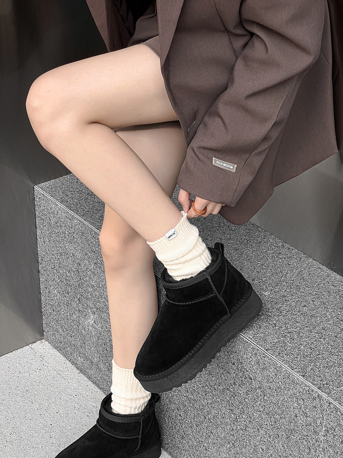 📚 雪地靴周冬雨同款牛皮mini厚底短靴2024年冬季款加厚增高保暖棉鞋