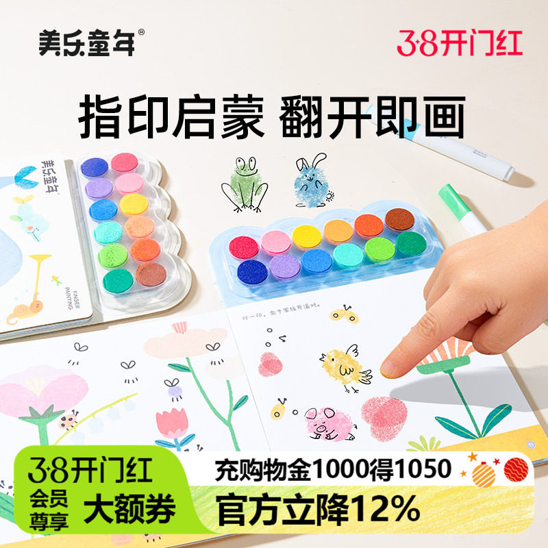 📚 美乐童年指印画颜料儿童无毒彩色印泥盘印章手指画宝宝涂鸦绘画