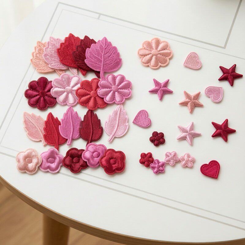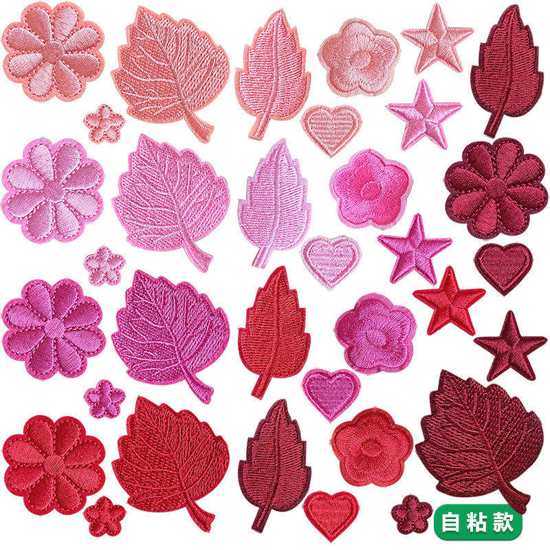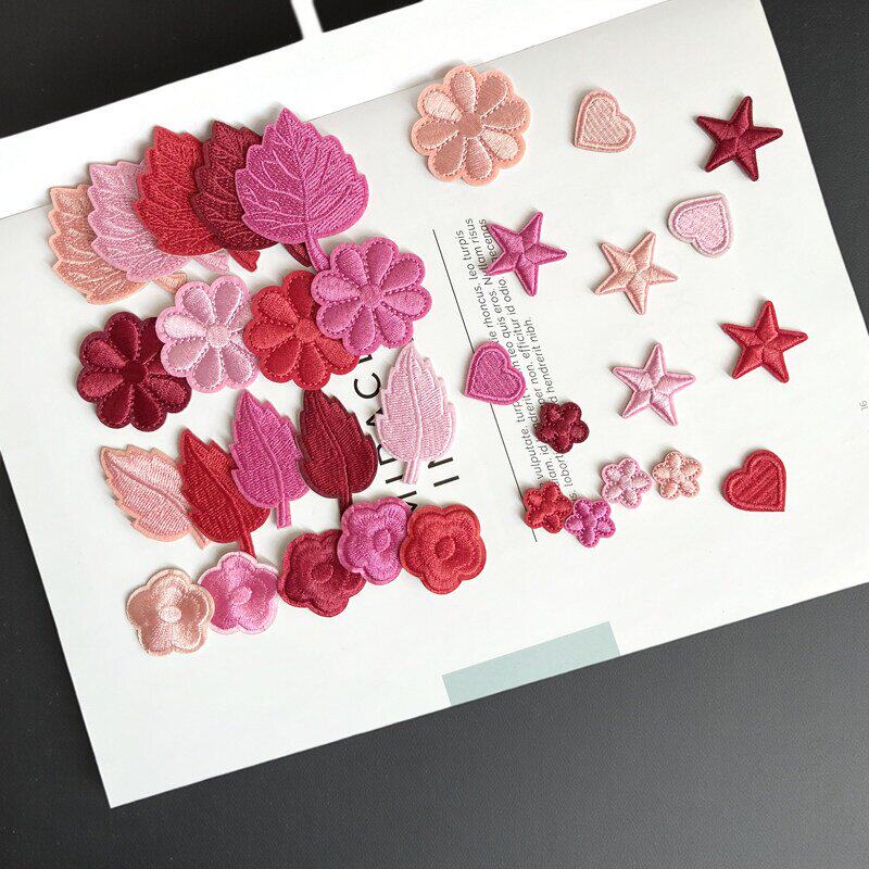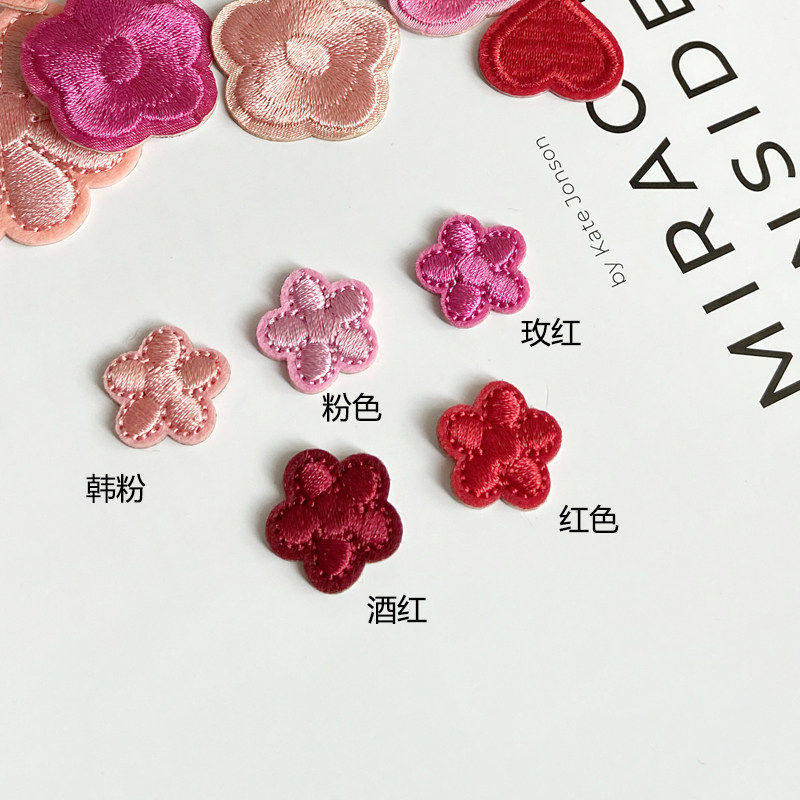 📚 粉色玫红酒红色补丁贴自粘羽绒服贴免缝花朵小号刺绣破洞装饰布贴
