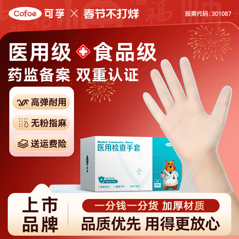 📚 可孚一次性医用pvc检查手套食品级专用tpe医疗实验室外科医护家务
