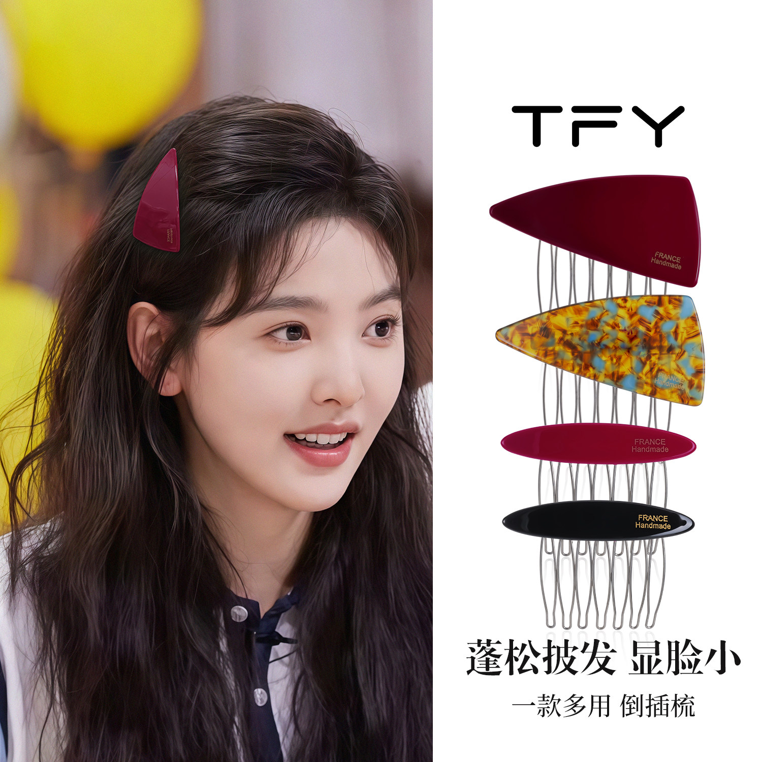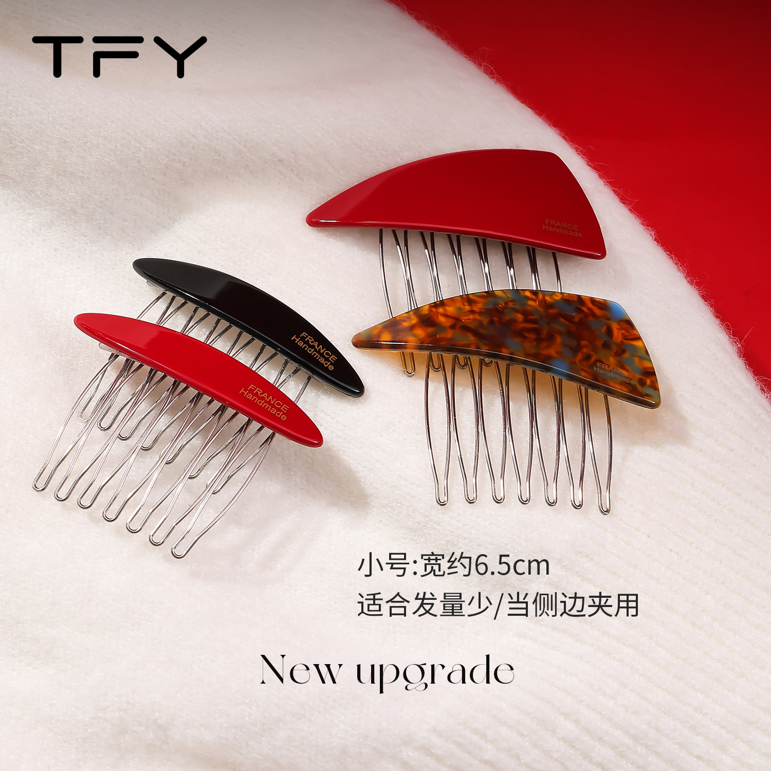 📚 红色小号倒插梳发夹边夹侧边刘海夹碎发夹高颅顶蓬松神器新年发饰