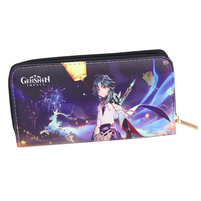 📚 卡通印花原神胡桃刻晴魈零钱包儿童青少年学生多卡位长款拉链钱包