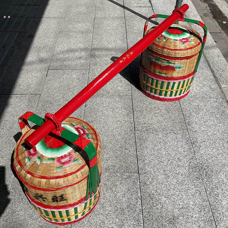 📚 婚嫁乔迁新居进宅红色实木扁担结婚搬家仪式用品挑竹篮春盛红木担
