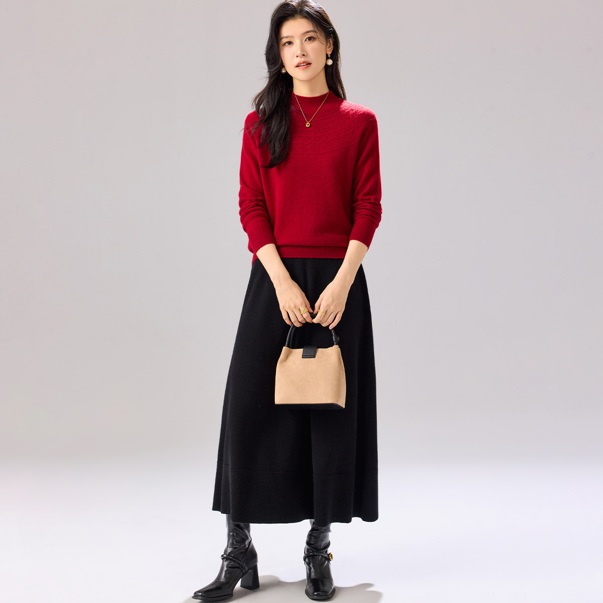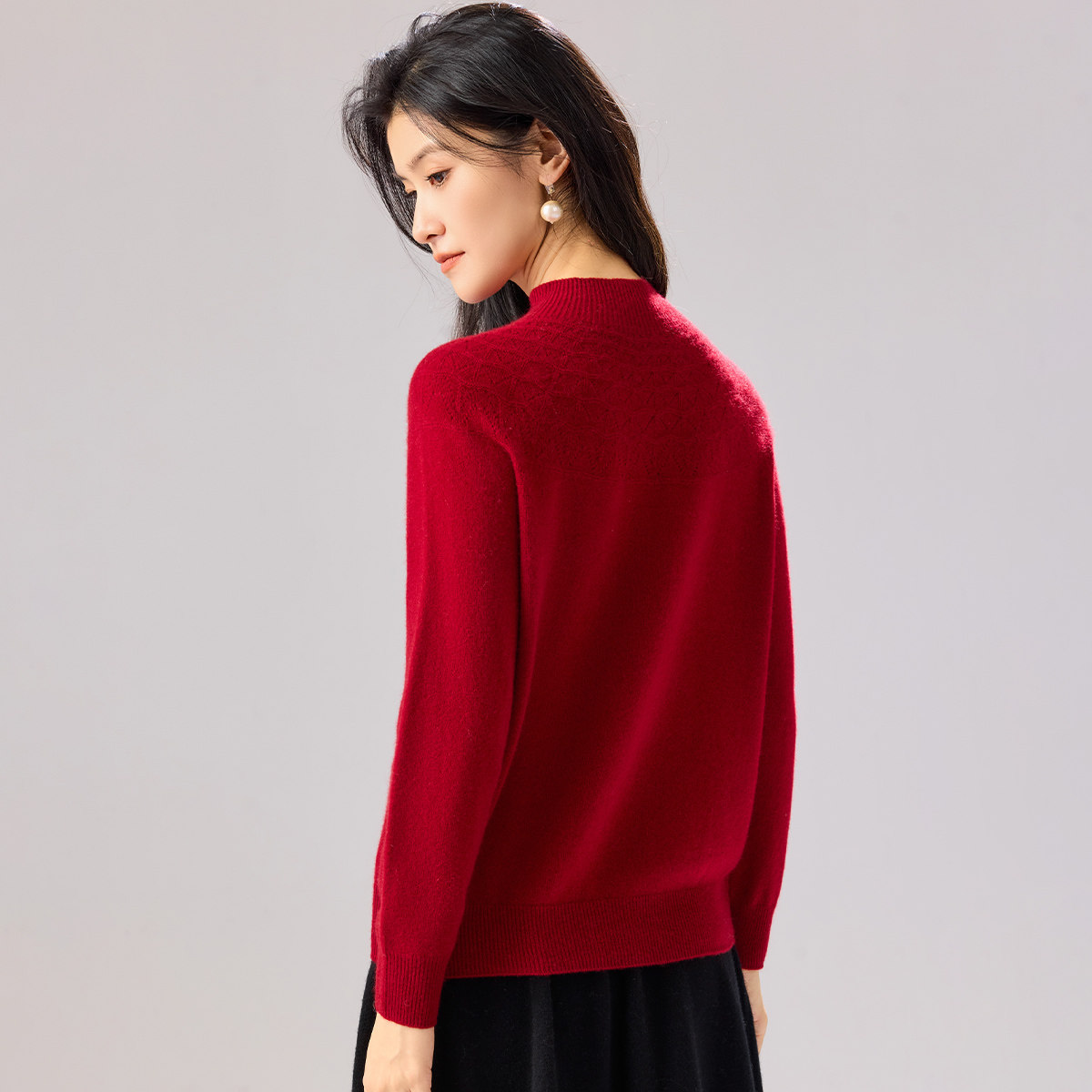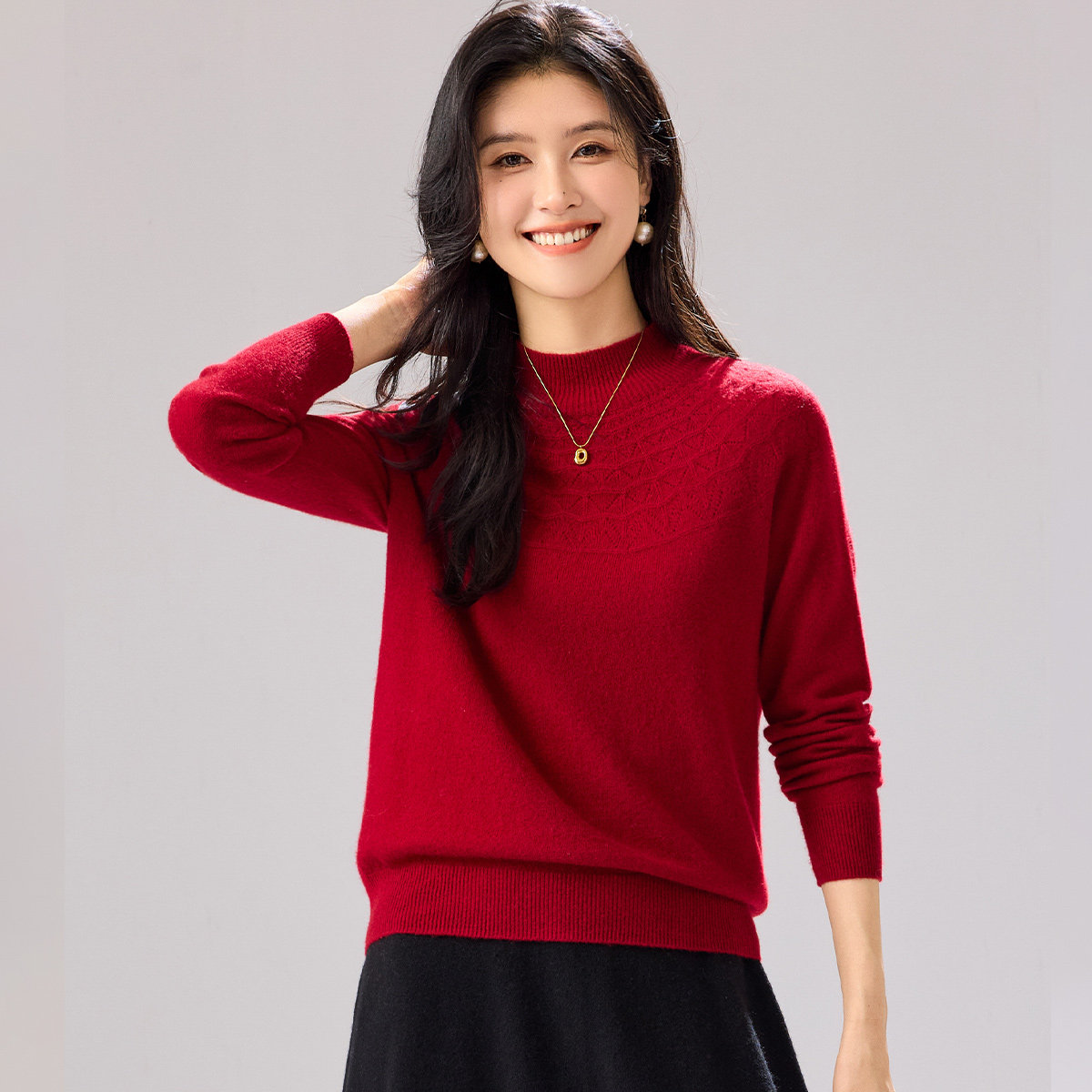 📚 金菊半高领纯色不规则扇形提花秋冬新款羊毛针织衫简约女式羊绒衫