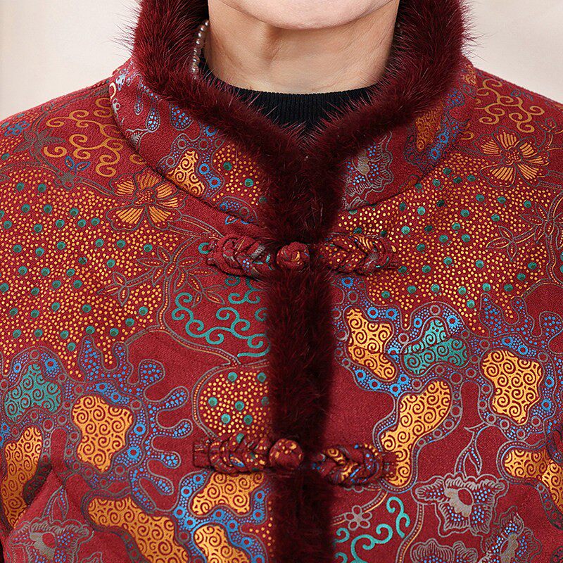📚 奶奶冬季羽绒服女老年人妈妈冬装外套老太太中国风过年皮草衣服