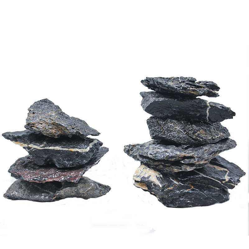 📚 酸洗青龙石片石小块三湖慈鲷造景石天然叠石晒台洞穴鱼缸造景成品