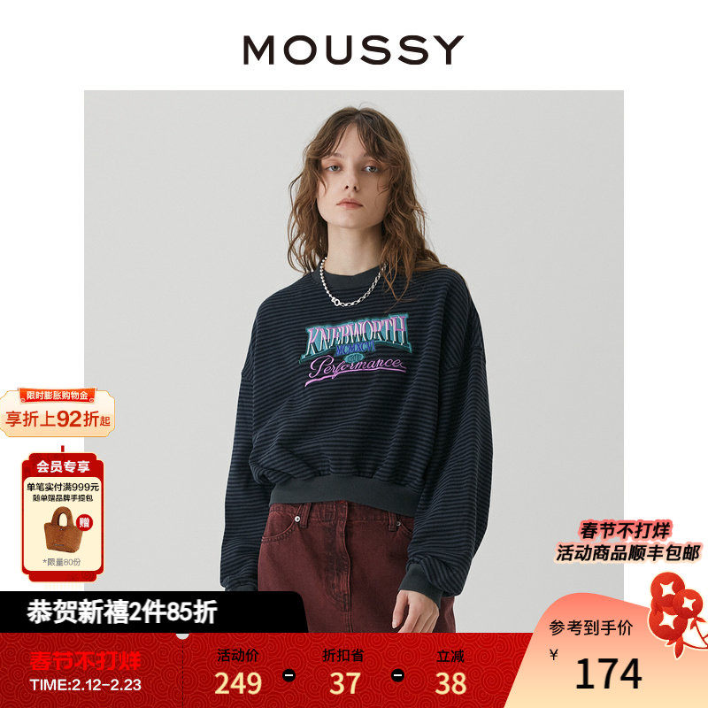📚 MOUSSY 新品复古条纹创意图案印花街头短款舒适卫衣010HSQ90-0271
