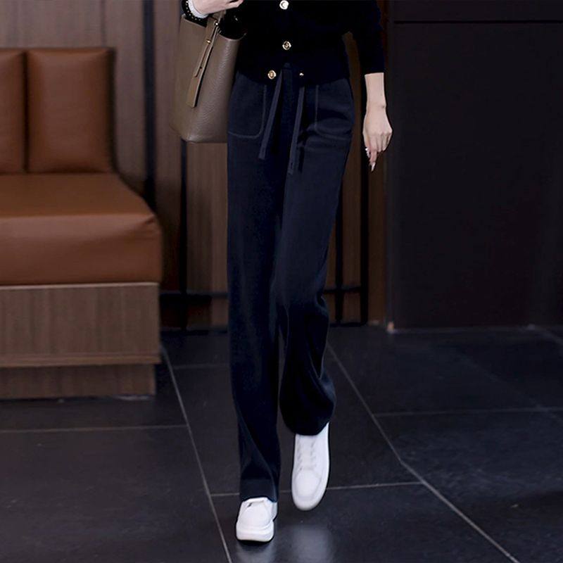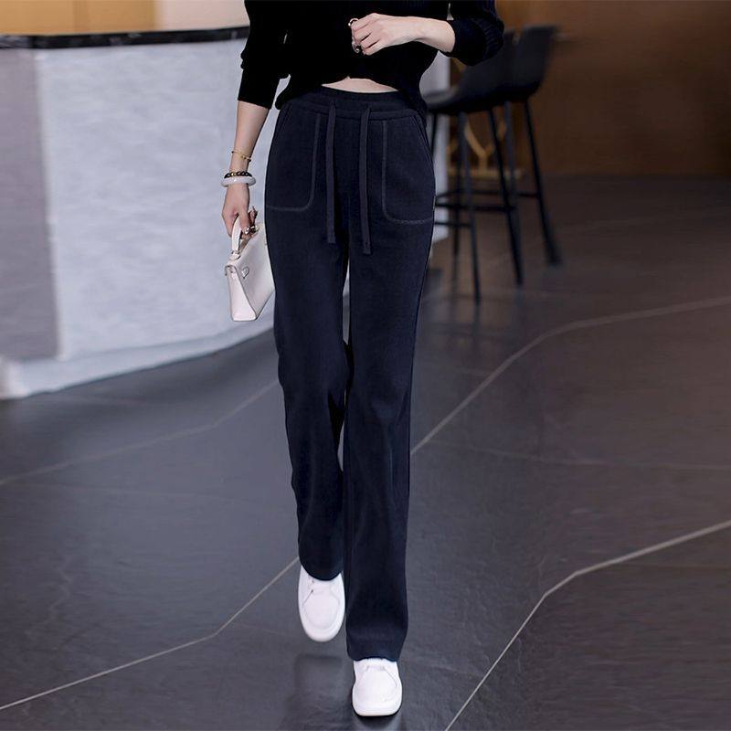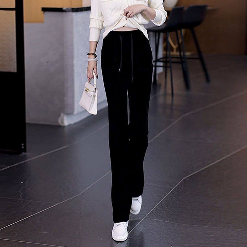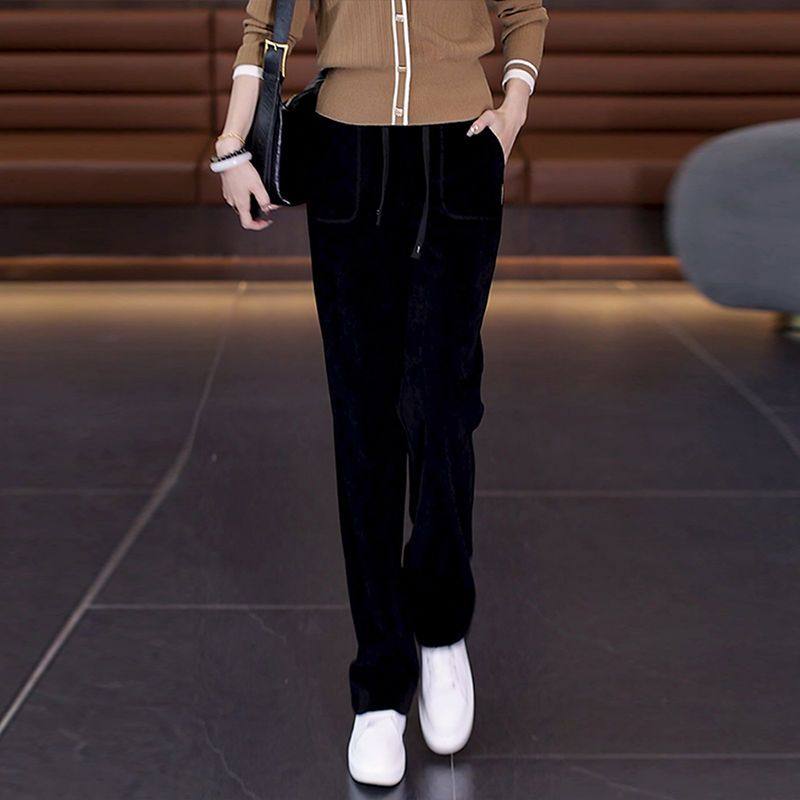 📚 雪尼尔裤子女秋冬季阔腿裤2024新款加绒加厚窄版高腰直筒休闲女裤
