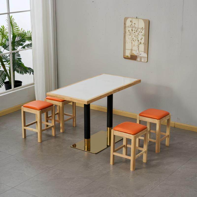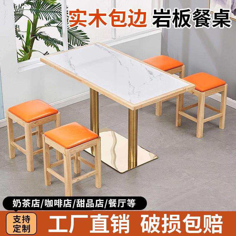 📚 快餐桌椅实木凳子小吃餐饮商用岩板麻辣烫奶茶店煲仔饭小圆方桌