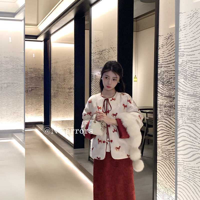 📚 不出错No errors【福马迎春】温柔马年刺绣提花新中式羽绒服 新款