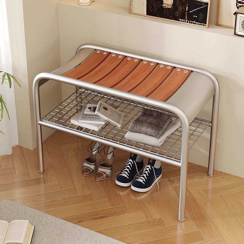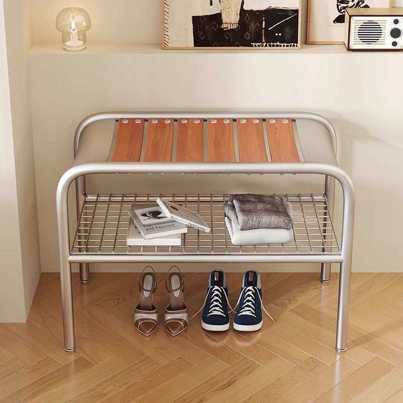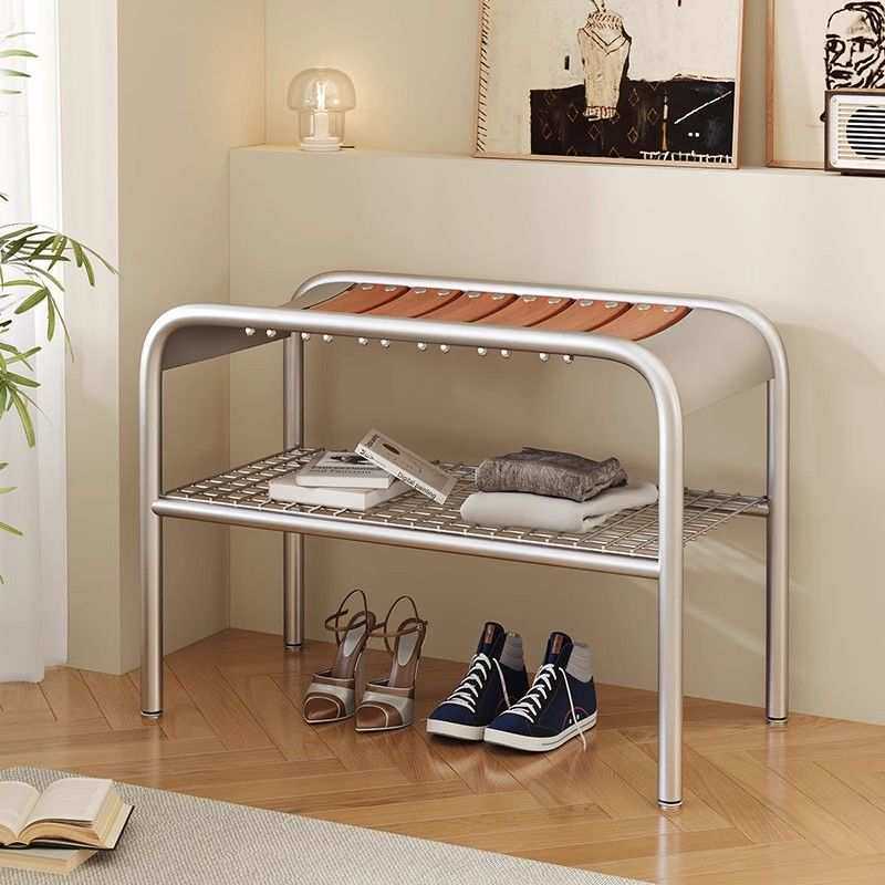 📚 现代简约风多功能换鞋凳高级入户鞋柜铁艺材质不锈钢色坐式设计
