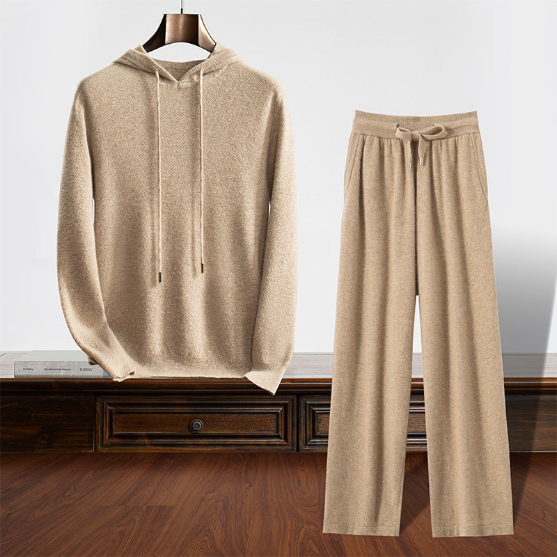 📚 男士抽绳连帽帽衫上衣针织衫纯山羊绒衫羊绒裤长裤阔腿裤羊绒套装