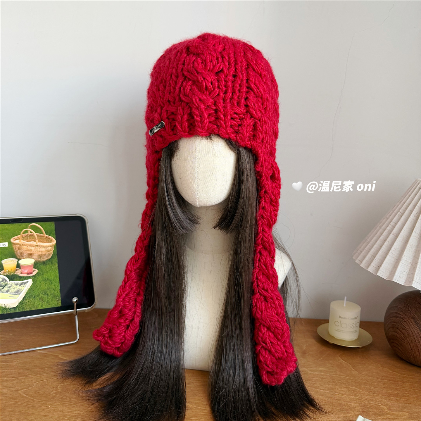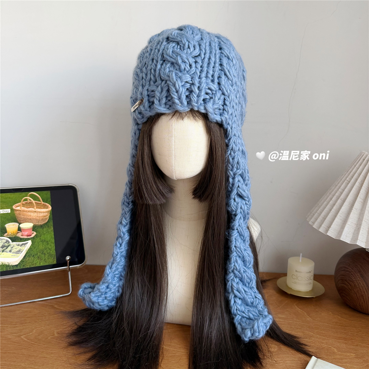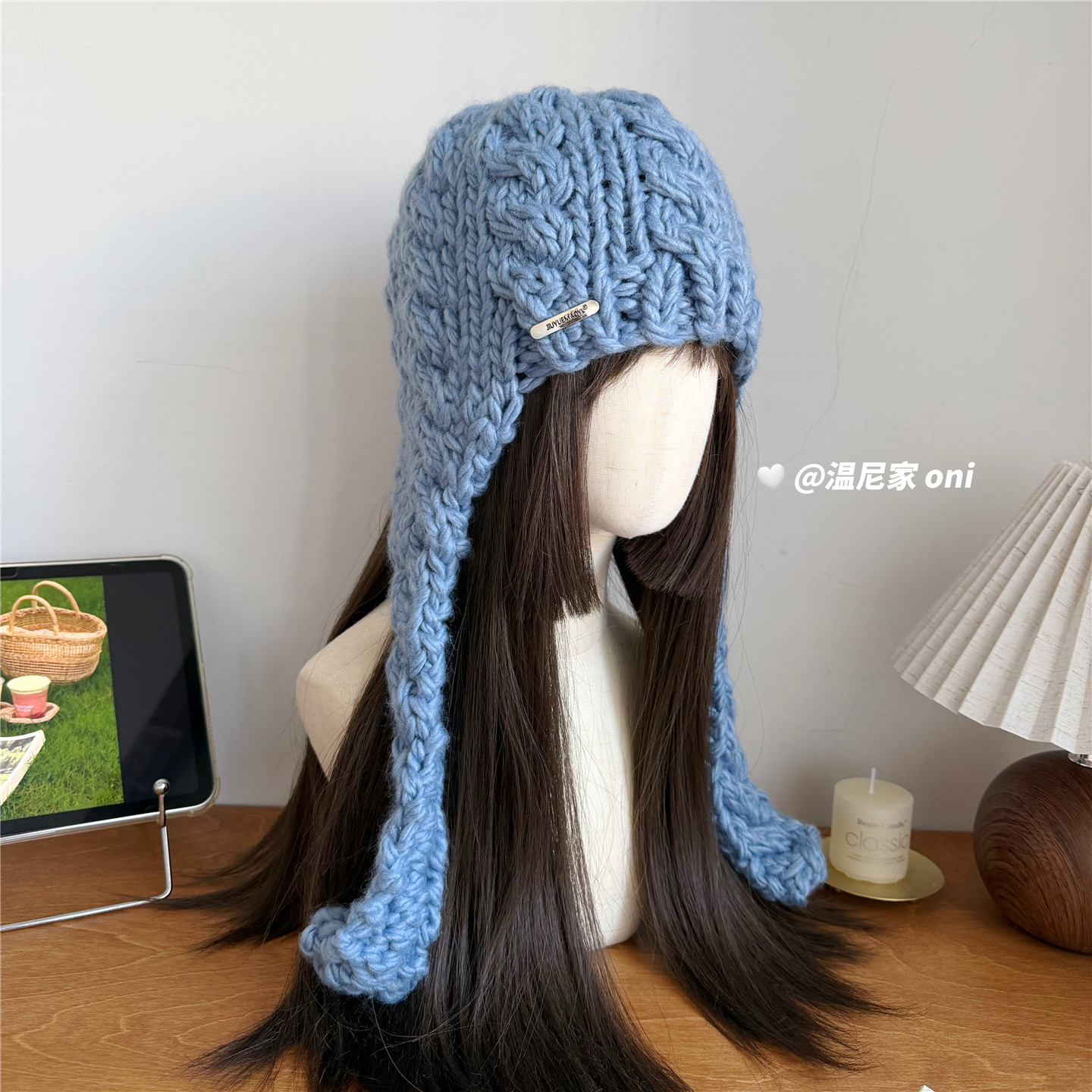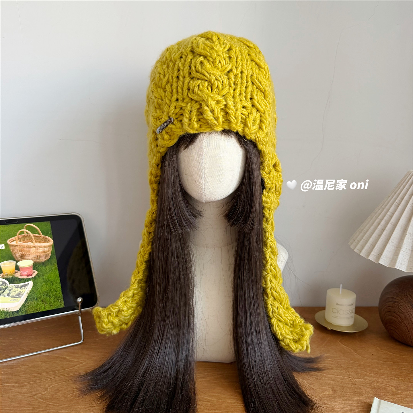 📚 韩系设计款~复古麻花粗针包头飞行帽子女冬ins护耳针织绑带毛线帽