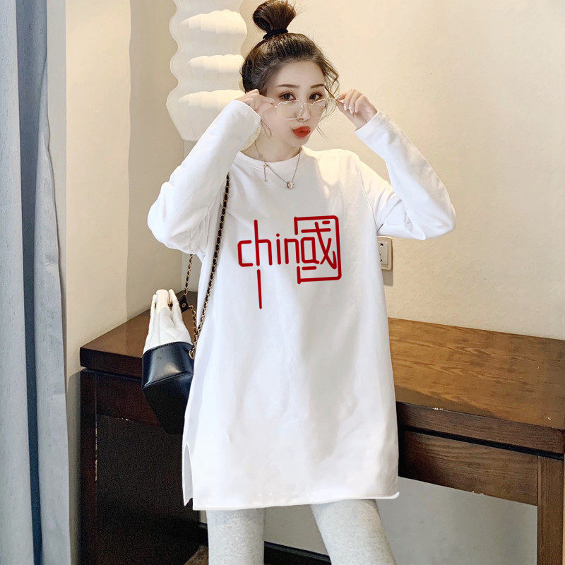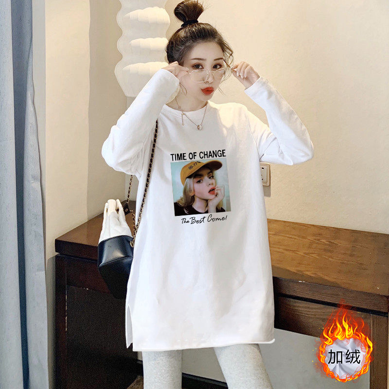 📚 长袖t恤女秋冬季加绒洋气内搭打底衫中长款德绒上衣遮屁股可外穿