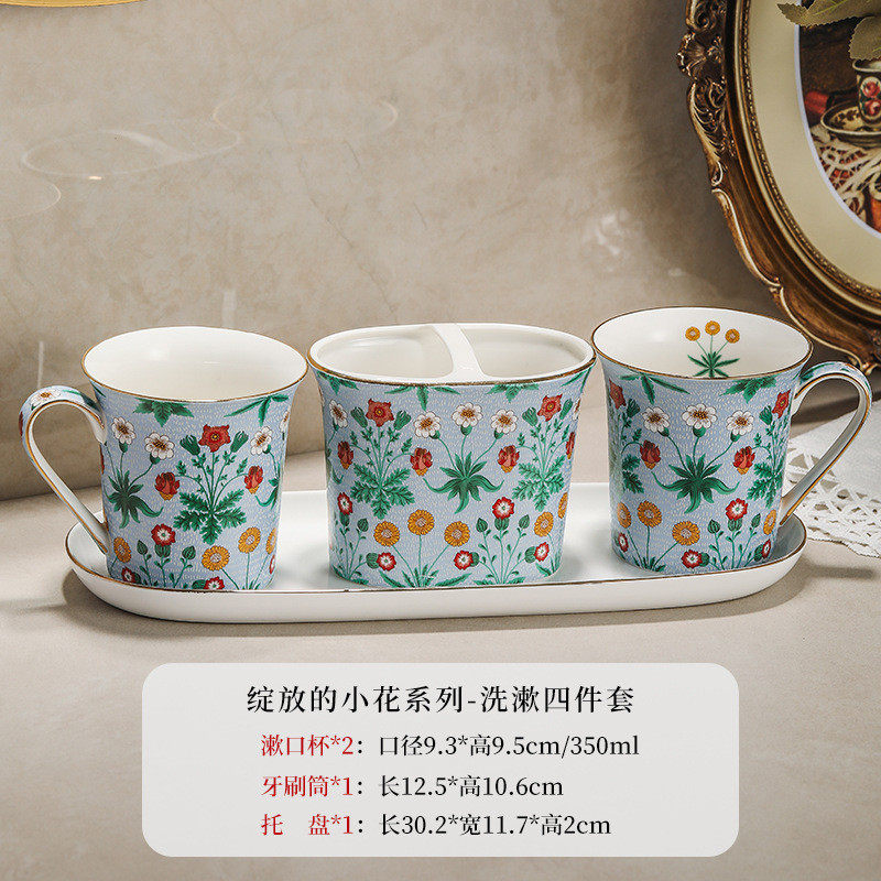 📚 绽放系列之洗漱套装漱口杯一对家用牙膏牙刷杯情侣刷牙杯子置物架