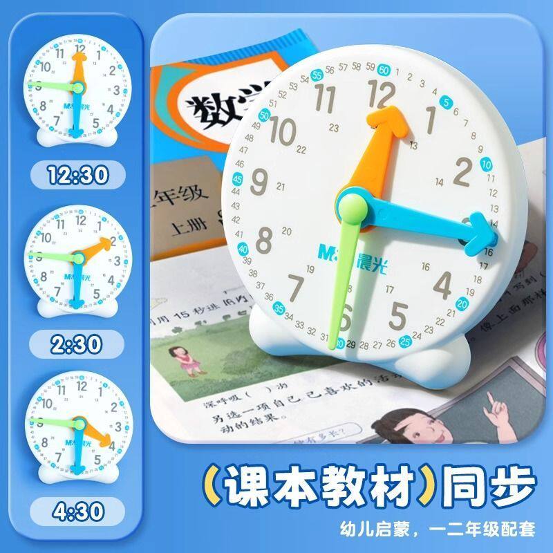 📚 晨光钟表模型小学生教具一二三年级认识时间三针联动数学学习钟
