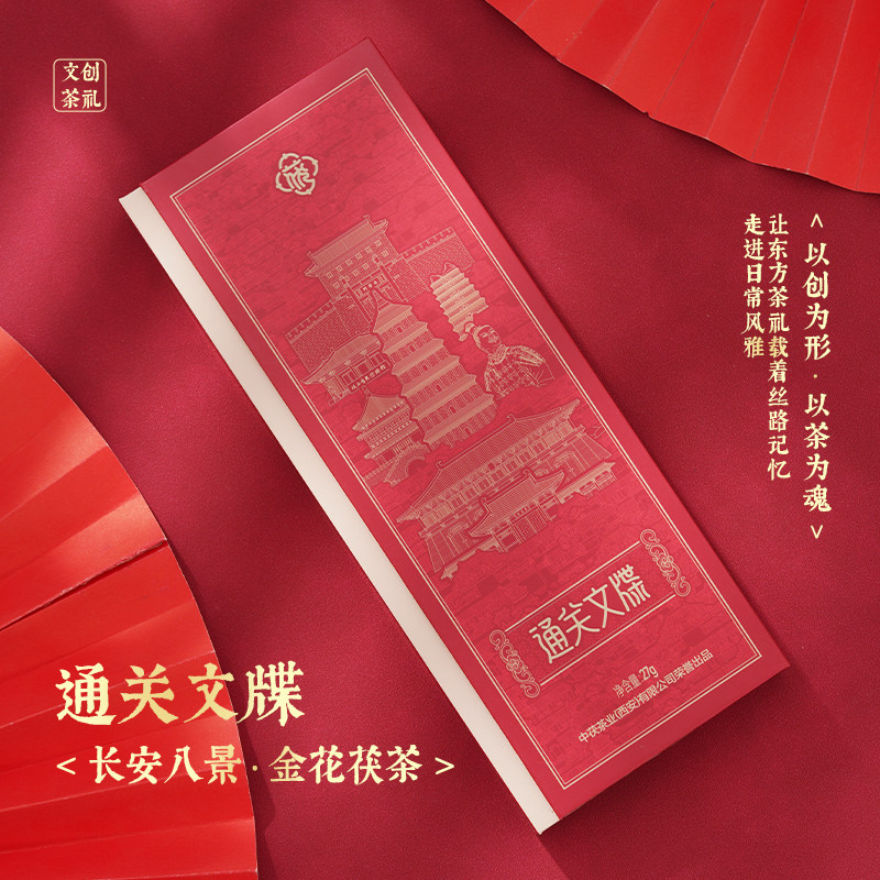 📚 通关文牒泾阳茯茶创意礼盒装红色烫金茯茶礼品伴手礼