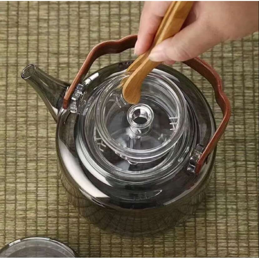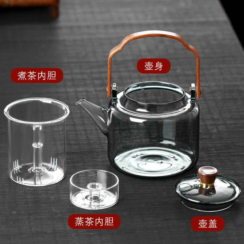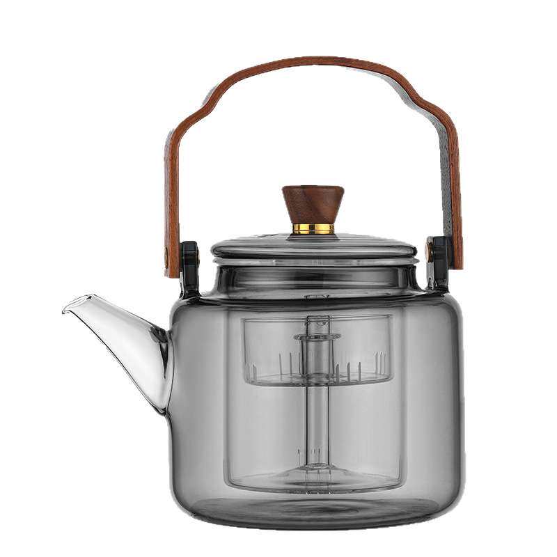 📚 灰色提梁壶门拱高硼硅玻璃四代茶壶蒸煮一体漏壶著茶器茶水分离