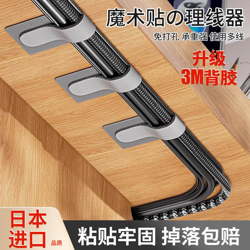 📚 日本魔术贴理线器扎线带理线带电线固定器适用3M背胶数据线收纳带