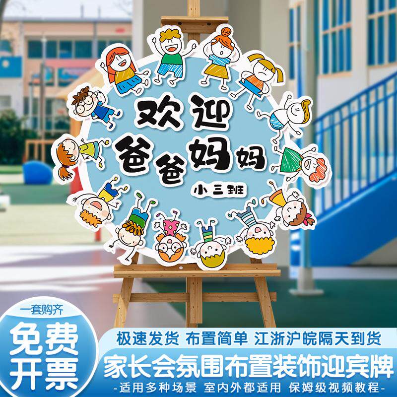 📚 幼儿园家长会签到台布置装饰学校班级教室仪式创意迎宾牌欢迎kt板