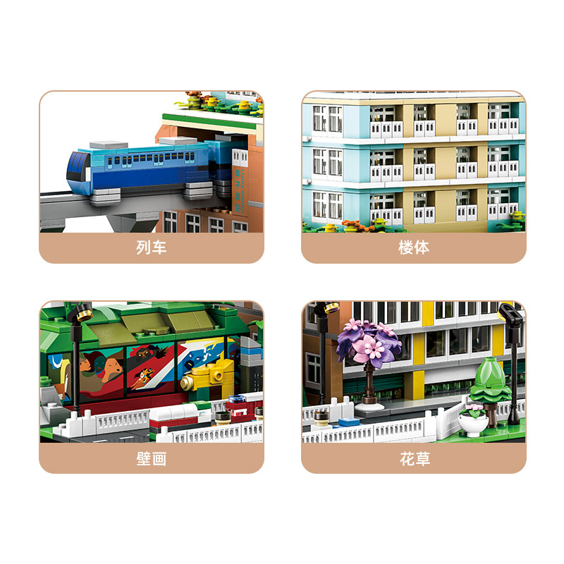 📚 重庆李子坝1136颗粒亚洲系列WANGE建筑积木玩具拼装模型