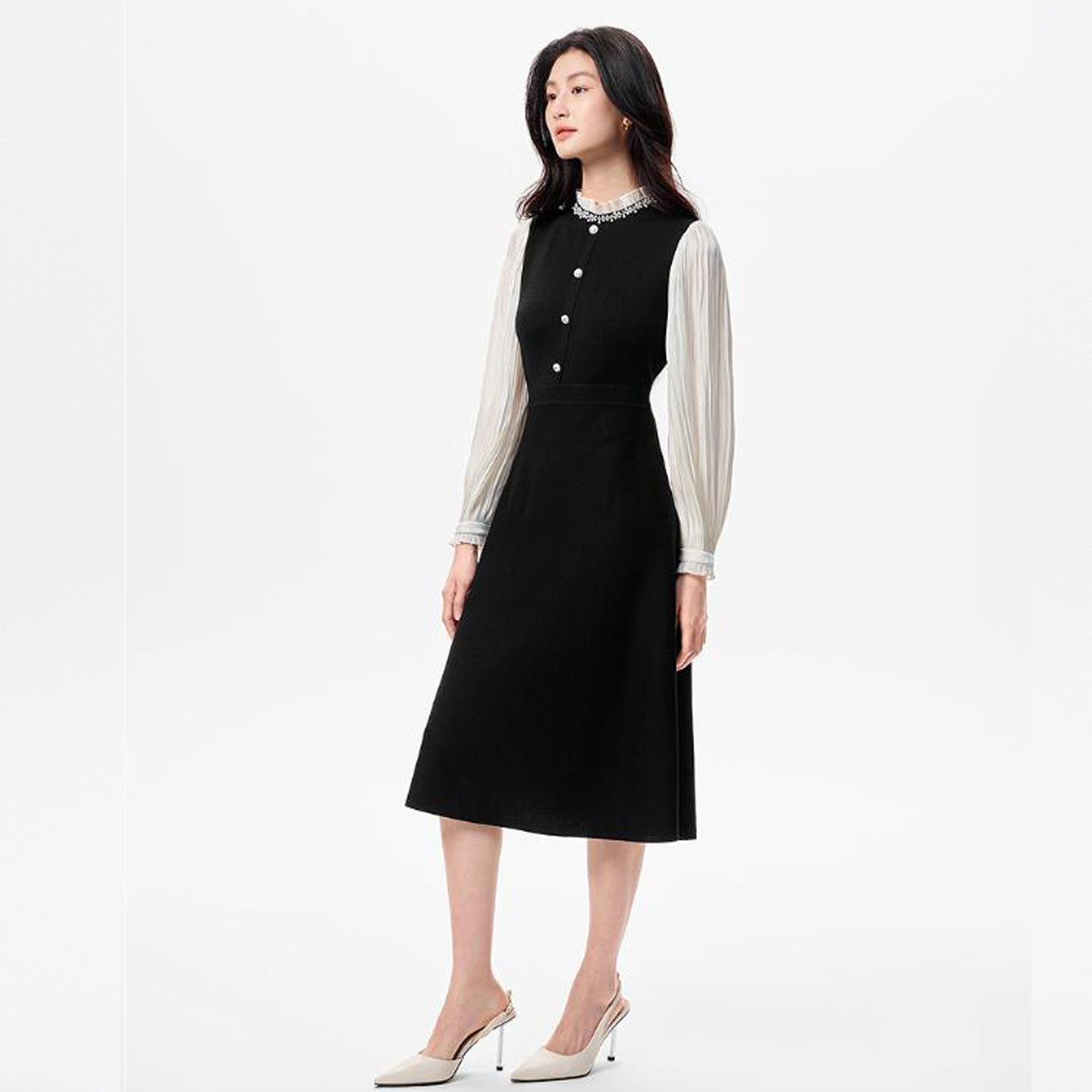 09¥ CA381 yypJUEKIe4Y¥ https://m.tb.cn/h.i3cwmyL 珂莱商场同款2025秋冬季新款黑色显瘦长袖中长款毛针织连衣裙子女 --------------------- 【原售价】3,687元 【现售价】398元。