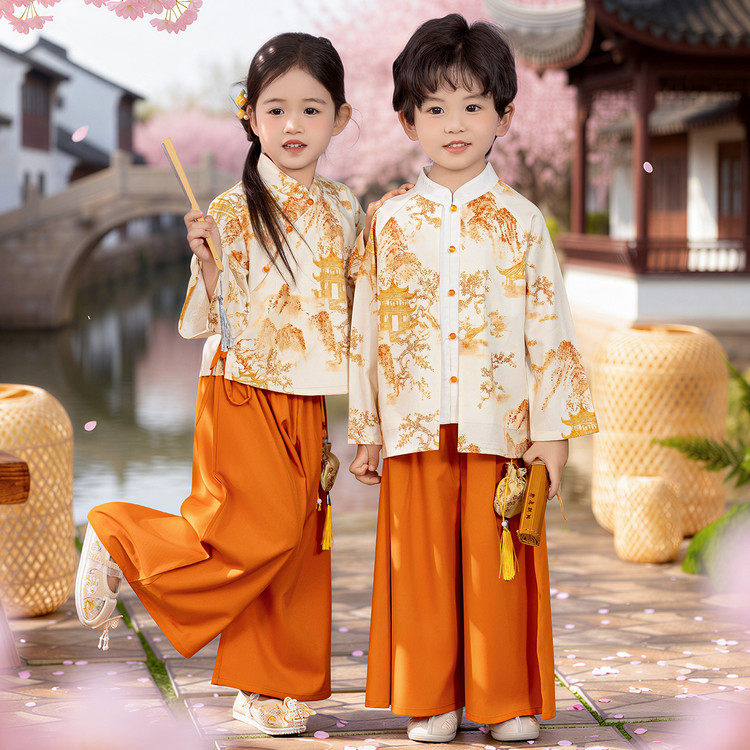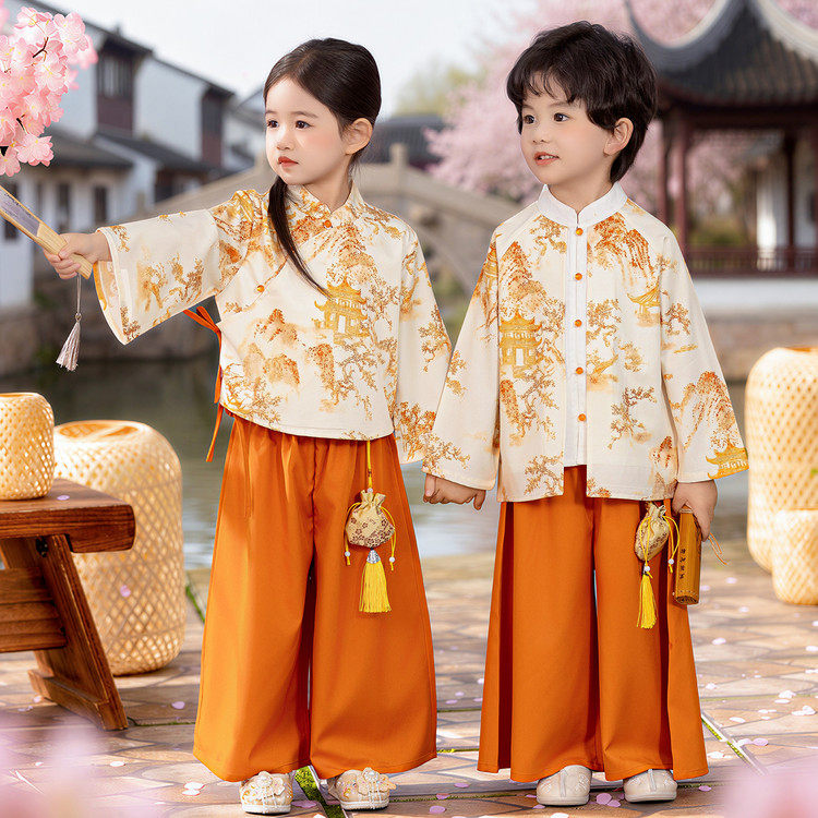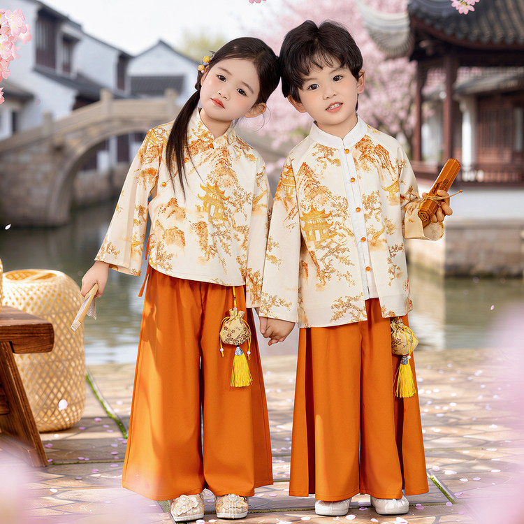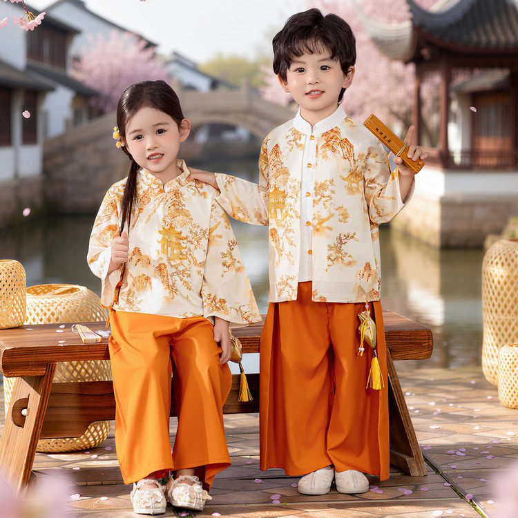 📚 新中式国风古典汉服男女童姐弟兄妹唐装幼儿园毕业照班服朗诵演出