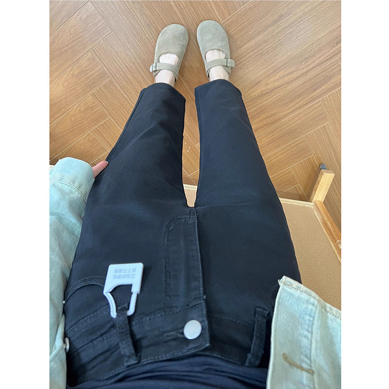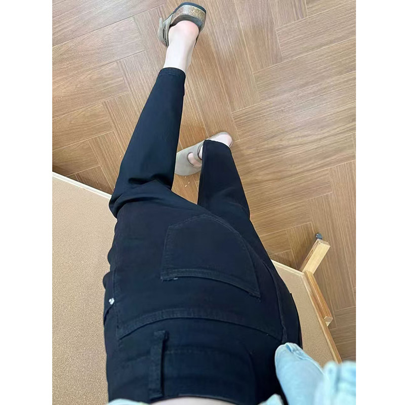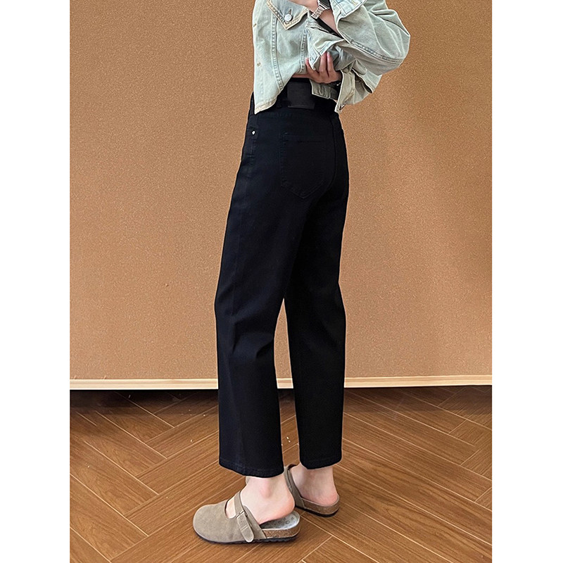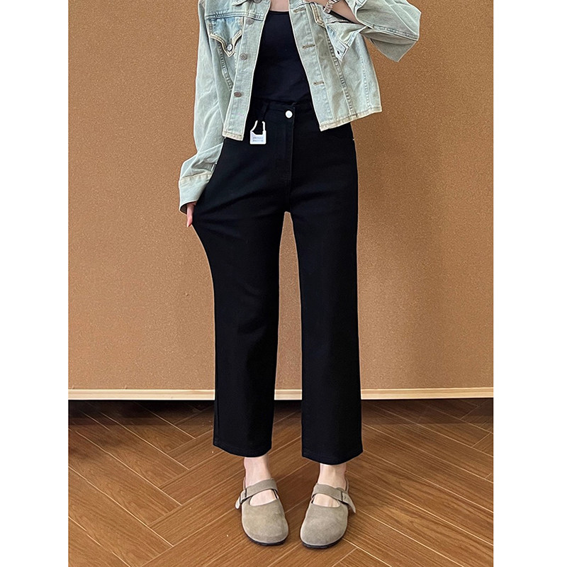 📚 黑色八分烟管牛仔裤女秋冬加绒小个子穿搭150cm九分弹力直筒裤xxs