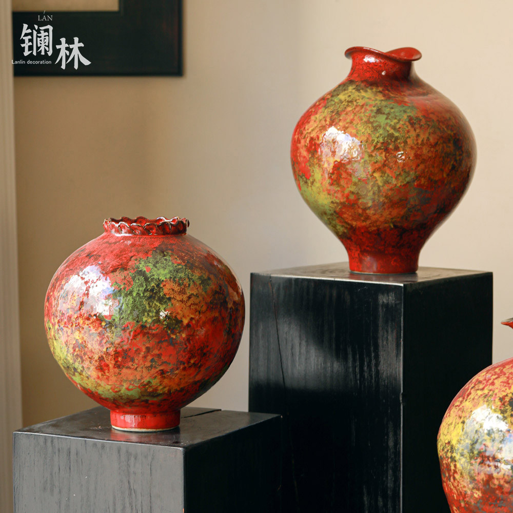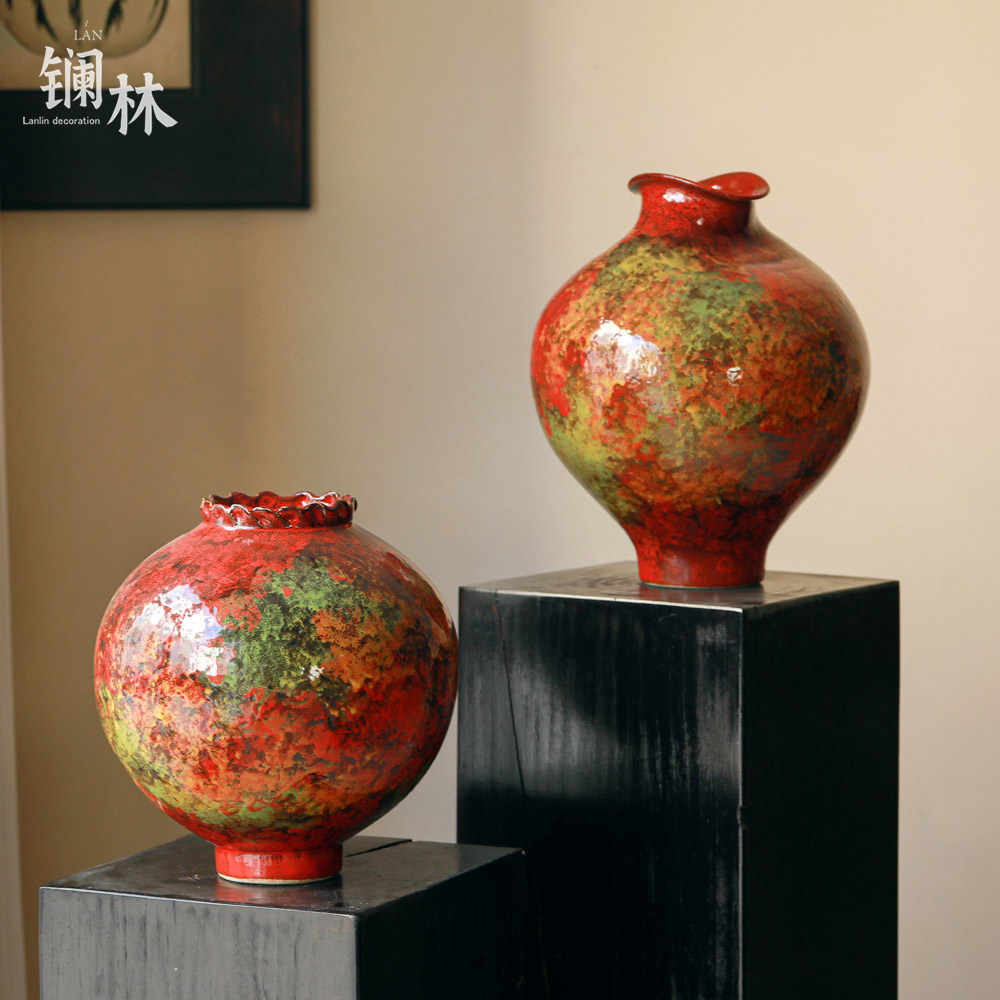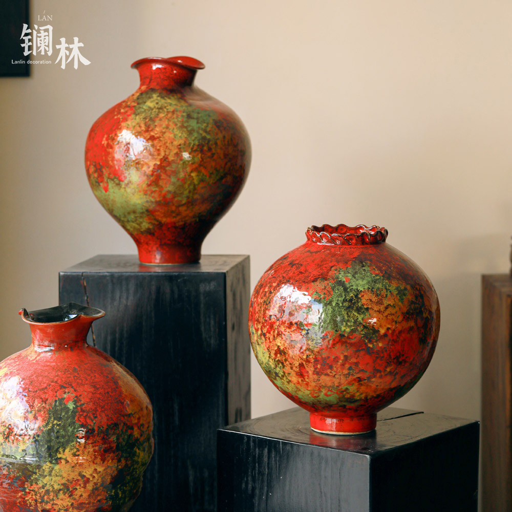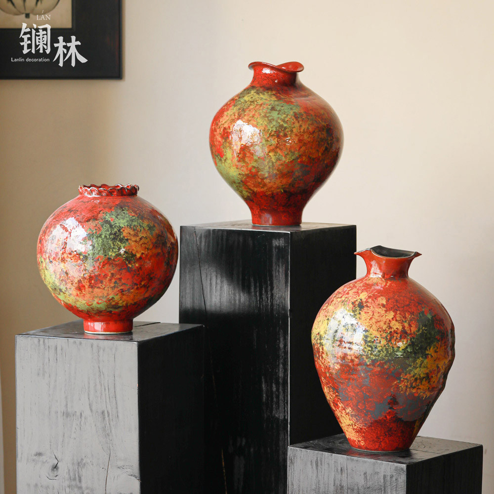 📚 新中式陶瓷花瓶侘寂风摆件客厅插花复古红色过年喜庆民宿酒店装饰