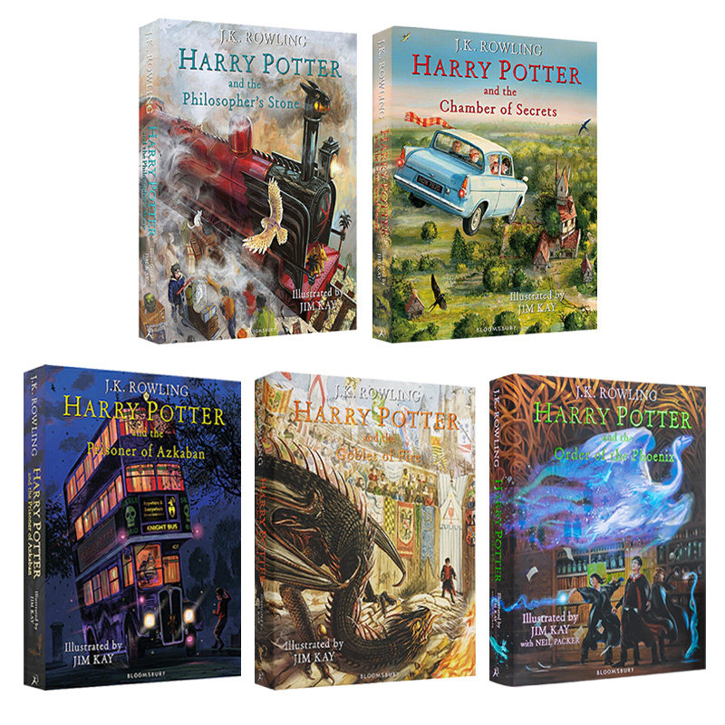 📚 哈利波特彩绘版1-5套装 英文原版 Harry Potter 插画版 哈利波特与魔法石 密室 阿兹卡班的囚徒 火焰杯 凤凰社 搭非官方魔法全书