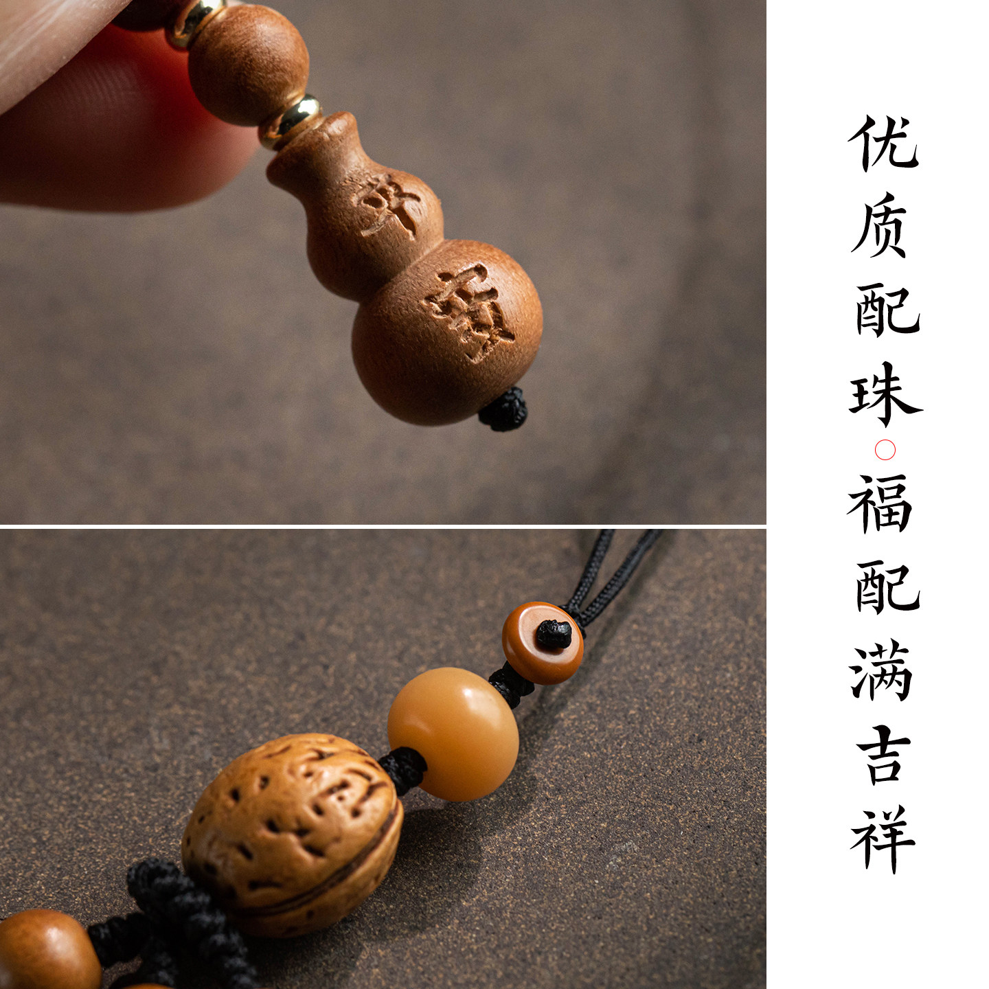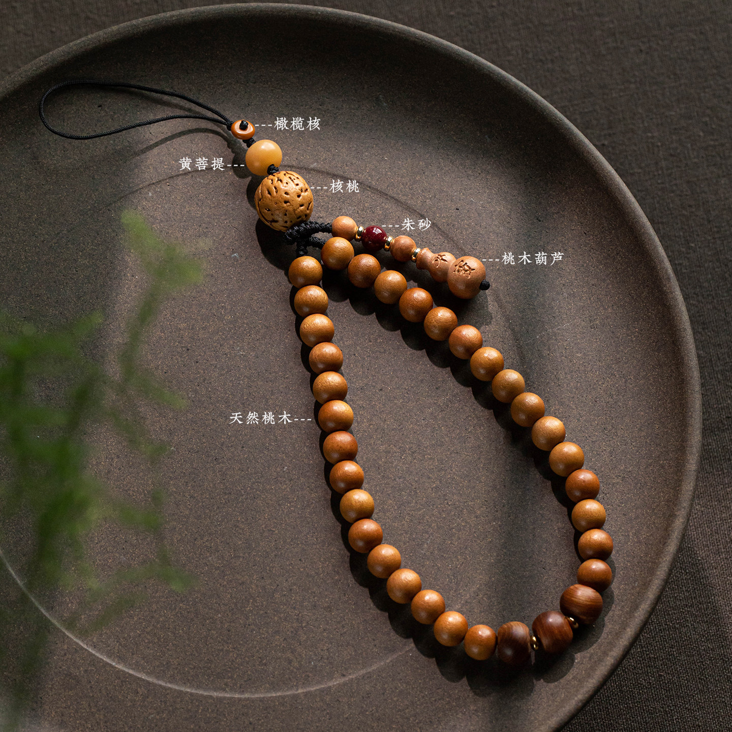 📚 琼睿天然老桃木手机链圆珠驱野生桃核邪手机挂绳精雕平安葫芦挂件手工编织手腕款棉绳短款随身串珠手机壳挂坠