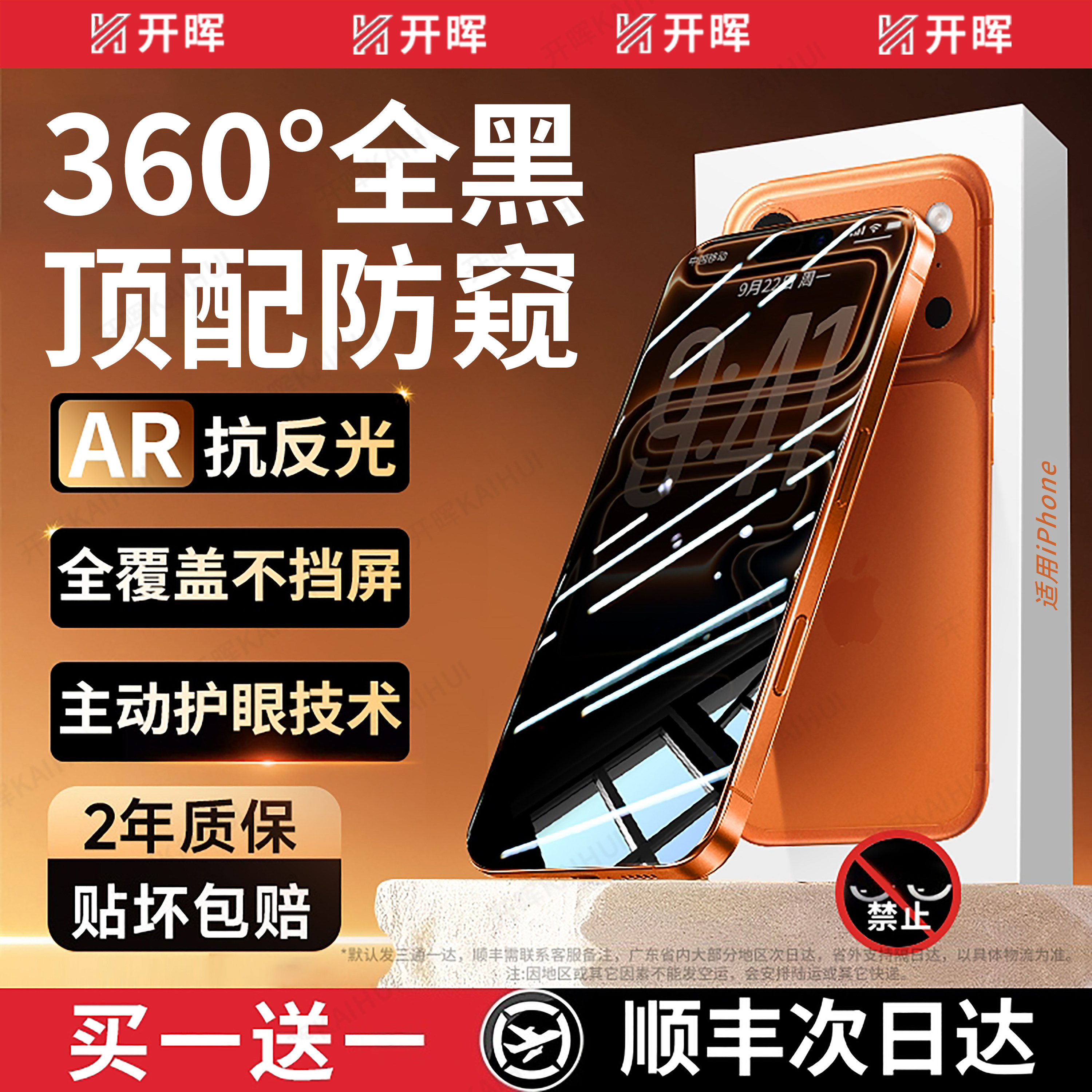 📚 【新AR360°康宁防窥】开晖适用苹果17防窥钢化膜iPhone16ProMax手机15防窥屏13防偷窥14全屏12护眼贴屏幕air