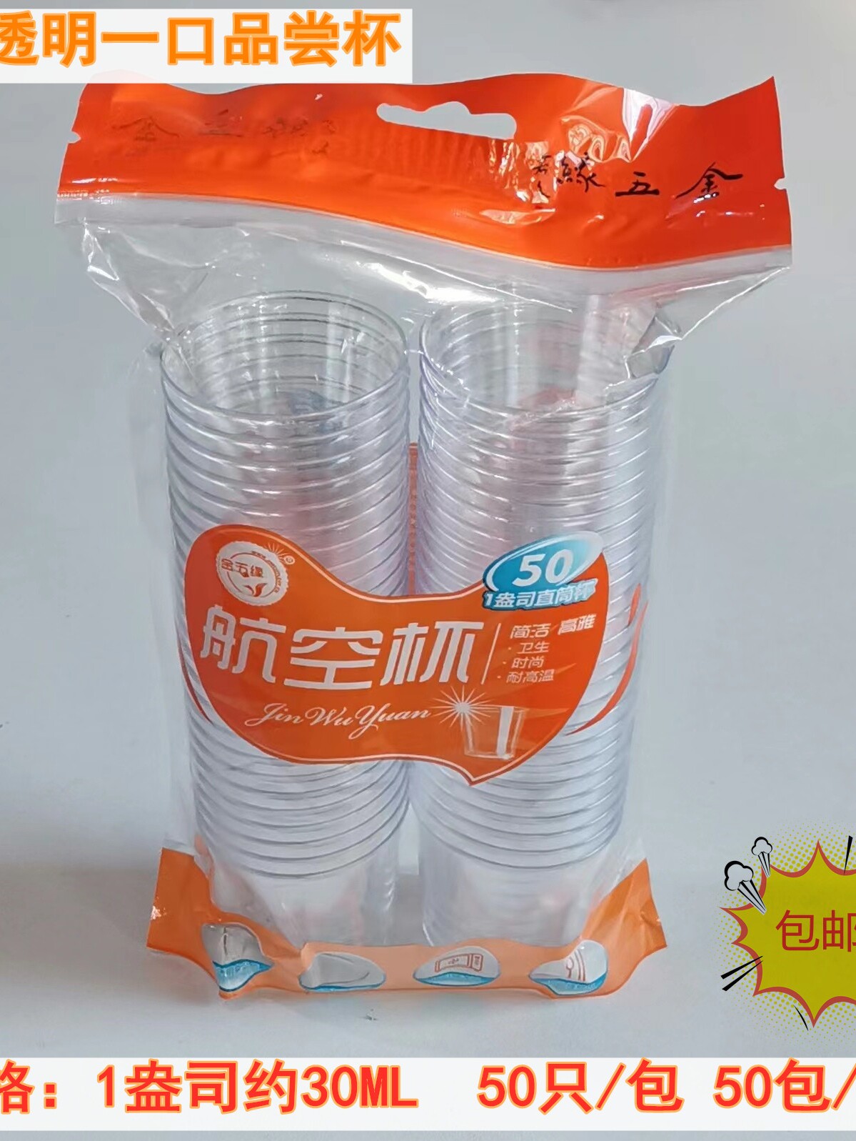 📚 金五缘一次性硬质水晶航空杯加厚透明品尝杯30ML不变型1.5盎司杯