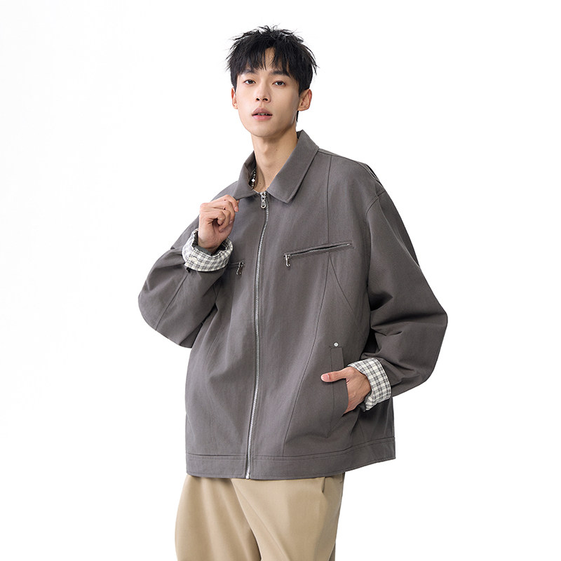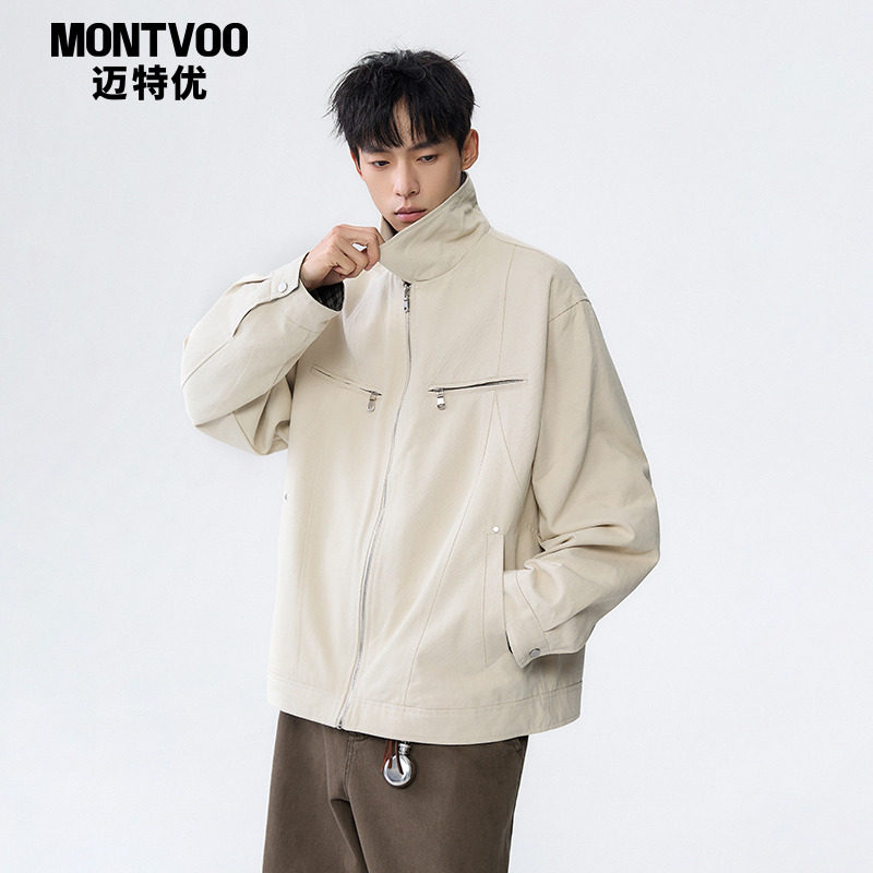 📚 迈特优哈灵顿cleanfit夹克男生重磅水洗帆布休闲翻领短款工装外套