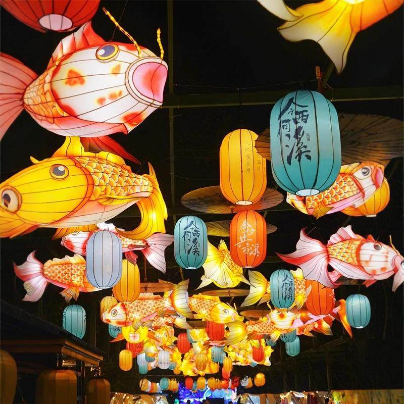 #景区步行街 #装饰艺术 #古风绘画 #中式星球圆形中国风吊灯 #探店体验