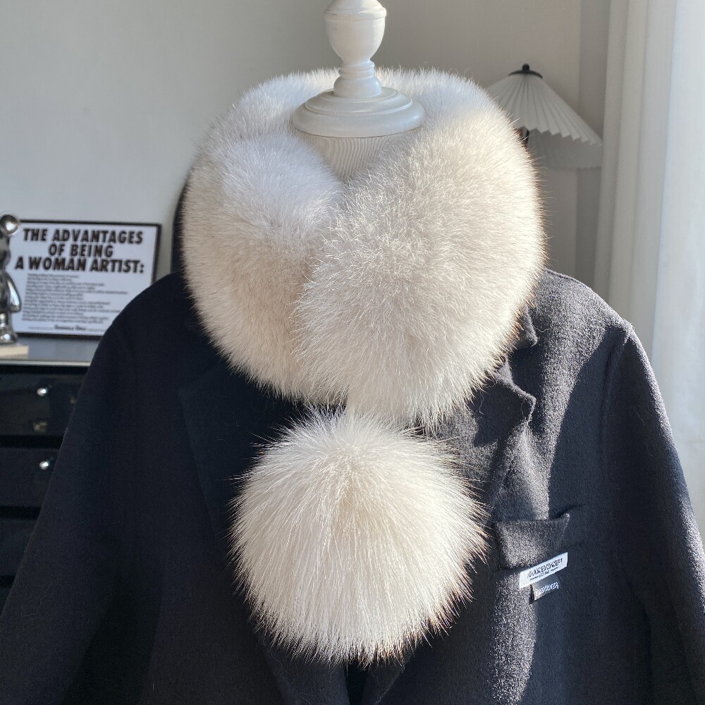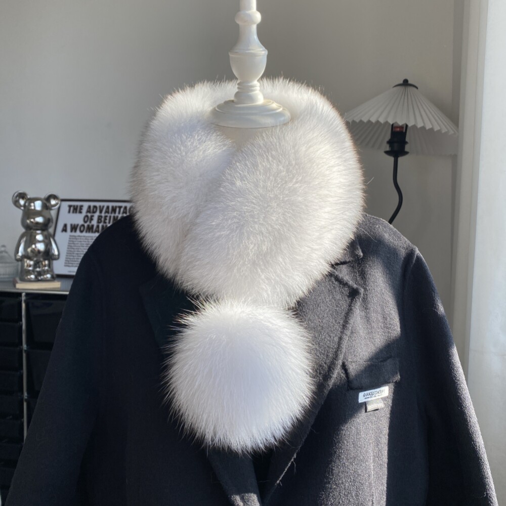 📚 韩版狐狸毛围巾女冬百搭短款大毛球皮草磁铁吸扣气质毛毛围脖领子