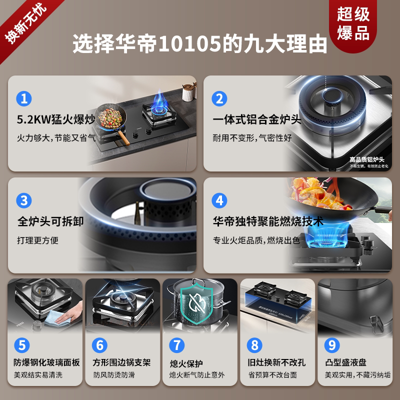 📚 华帝i10105燃气灶家用煤气灶天然气液化气炉具灶官方旗舰店正品