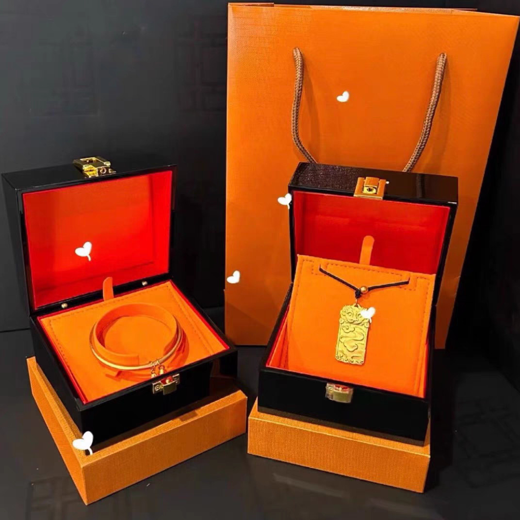 📚 老铺黄金同款首饰盒手镯盒高级钢琴烤漆珠宝盒吊坠手链戒指收纳盒